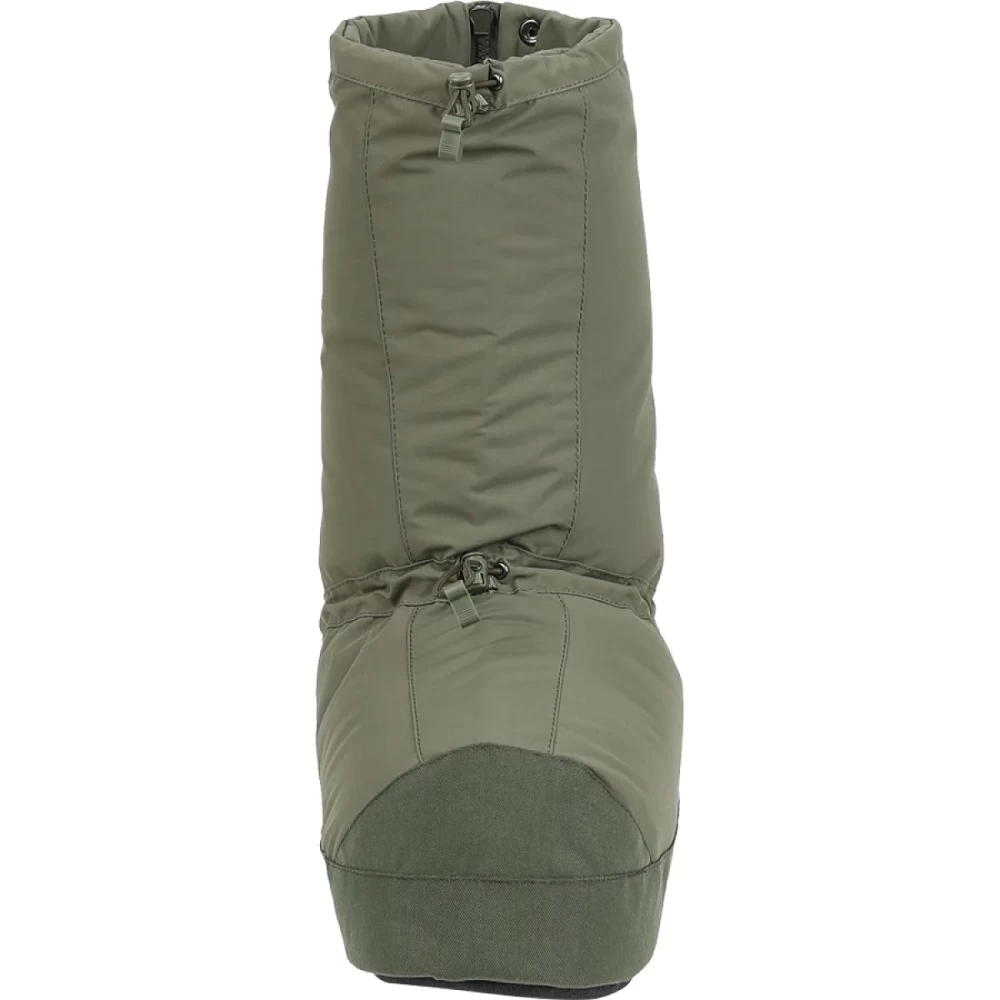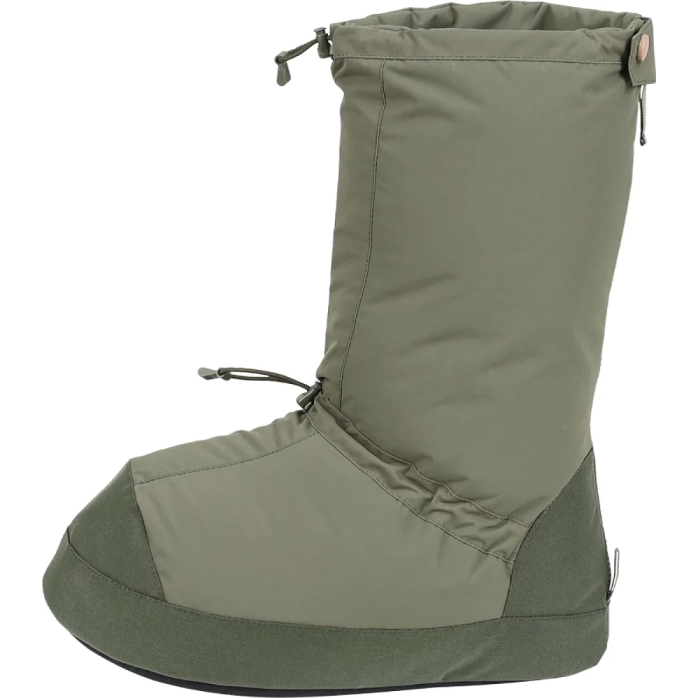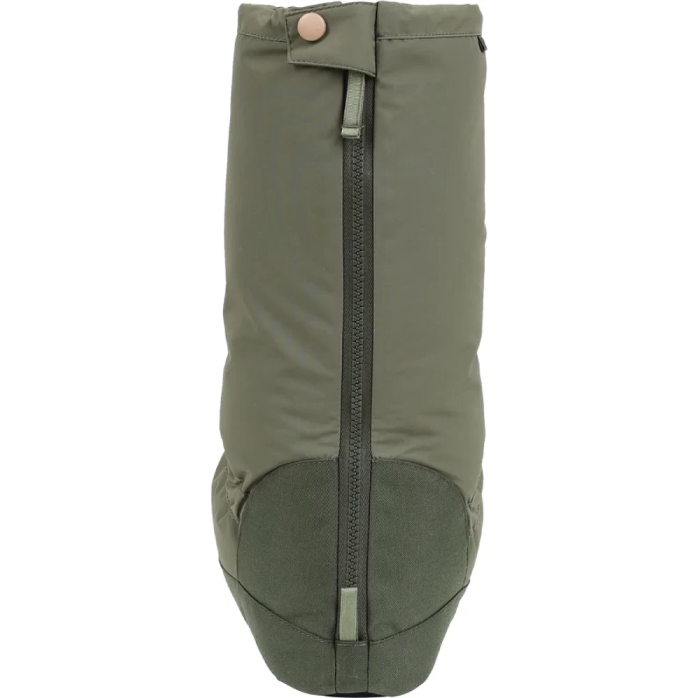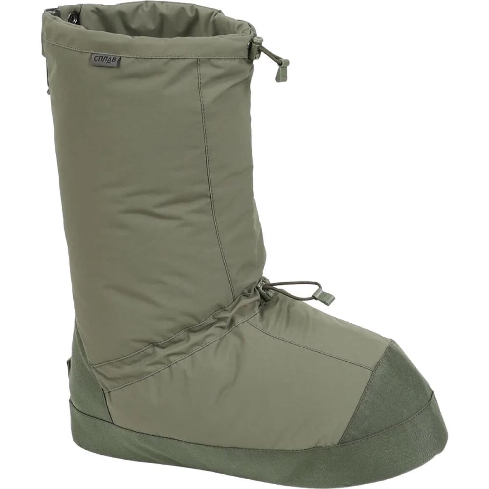 Утепленные пакуемые бахилы, надеваются поверх обуви во время стоянок. Характеристики Вертикальная застежка в виде надежной крупной тракторной молнии с ухваткой из тесьмы и верхней паты на кнопке расположена сзади, благодаря чему в передней части бахил отсутствуют холодные швы. Для удобства надевания бахил на каблук ботинка внизу молнии расположена ухватка-петля из тесьмы Две утяжки эластичным шнуром с фиксатором и пластиковой ухваткой Duraflex® для подгонки бахил по ноге: по верху голенища и на подъеме ноги Подошва выполнена из обрезиненной ткани с рельефной поверхностью. Для защиты от истирания грубой обувью подкладка выполнена из ткани верха Внутри на подошве расположен карман из основной ткани, в который вставляются идущие в комплекте теплоизолирующие стельки из пены. Верхняя стелька — 8 мм полужесткая пена, нижняя стелька — 5 мм жесткая пена По низу расположено усиление накладками из ткани Cordura® 500d с полиуретановым покрытием на изнанке. Данная ткань имеет большую прочность на истирание и обеспечивает умеренную защиту от влаги. Накладки расположены по всему периметру нижних 4 см бахил, на задинке и на носке. Подошва и усиления прошиваются особо прочной бондированной нейлоновой нитью COATS Nylbond Пластиковая фурнитура Duraflex® Материал: Утеплитель: Shelter® Sport, 150 г/м2. Топовый утеплитель отечественного производства, полный аналог Primaloft® Sport/Silver. Обладает высоким сопротивлением деформации, предназначен для использования в пакуемых спальных мешках и одежде Ткань верха и подкладка: 100% нейлон 70d×160d, плотность 100 г/м2, легкая, но прочная ветрозащитная ткань с водоотталкивающей DWR обработкой поверхности Усиливающая ткань: Cordura® (100% нейлон) 500d, плотность 255 г/м2, особо прочная ткань для пошива военного снаряжения, PU покрытие на изнанке, с водоотталкивающей DWR обработкой поверхности Подошва: обрезиненная ткань с рельефной поверхностью, прочный нескользящий материал Вкладные стельки: пеносевилен