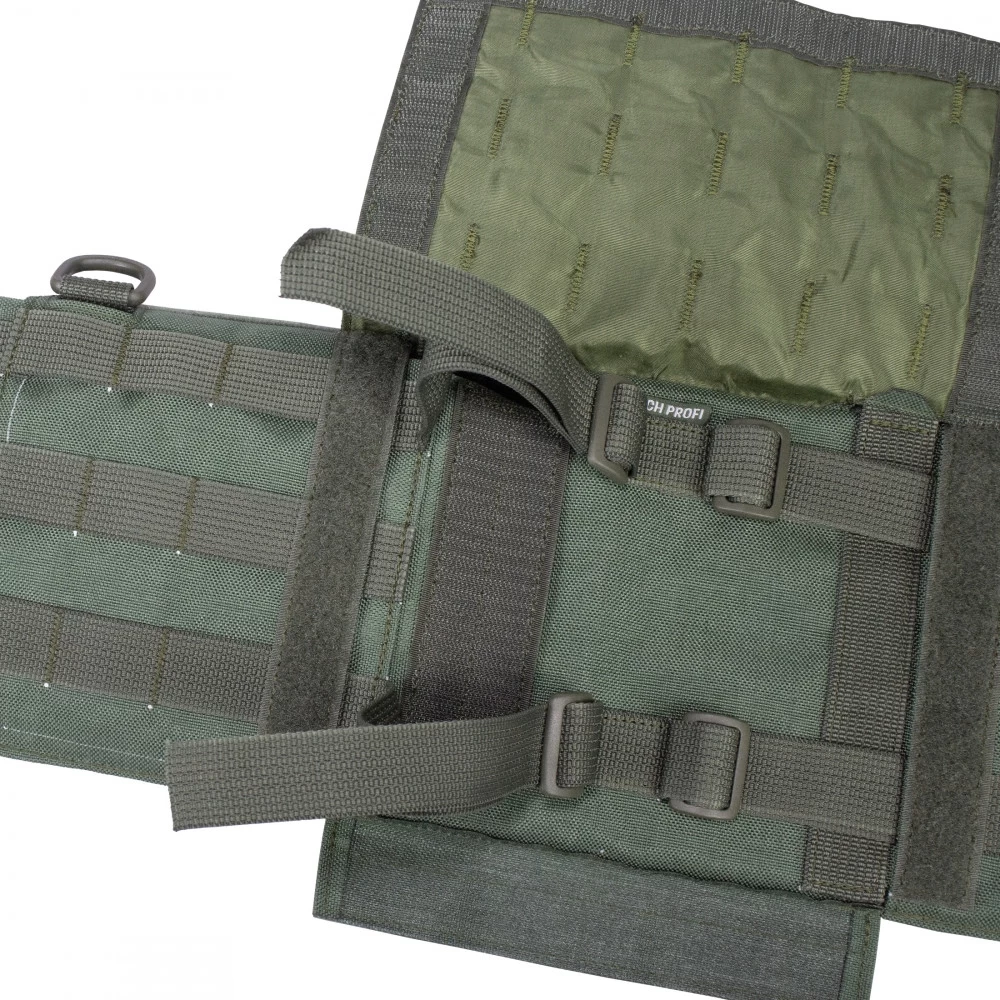 Регулируемый бандаж для пулеметчика с возможностью установки баллистического пакета. Бандаж – специальное приспособление, предотвращающее растяжение мышц брюшной полости и спины. Пулеметчик – человек, который должен переносить на себе тяжелое стрелковое оружие, боекомплект к нему, а также всю индивидуальную, а часто и дополнительную амуницию. Нагрузка на мышцы у него всегда повышена, что часто становится причиной травм, не слишком опасных, но способных существенно снизить боеспособность бойца. Применение бандажа позволяет зафиксировать брюшные мышцы, наиболее подверженные растяжению, за счет того, что конструкция принимает на себя часть весового усилия. Кроме того, данная модель бандажа по всему периметру оборудована интерфейсом M.O.L.L.E., что позволяет без труда навешивать на нее различные подсумки, кобуры и прочие элементы модульных разгрузочных систем. То есть бандаж не просто занимает место, а выполняет полезные функции. Особенности изделия: - Регулируемый при помощи строп охват полезной площади бандажа: 80 - 110 см (дальнейшая регулировка при помощи стропы: 90 - 140 см) - Фастекс с дополнительной блокировкой, предотвращающей открытие замка при случайном соприкосновении. - В зависимости от сезона и одежды, бандаж имеет возможность быстрой регулировки ширины в пределах 30см.