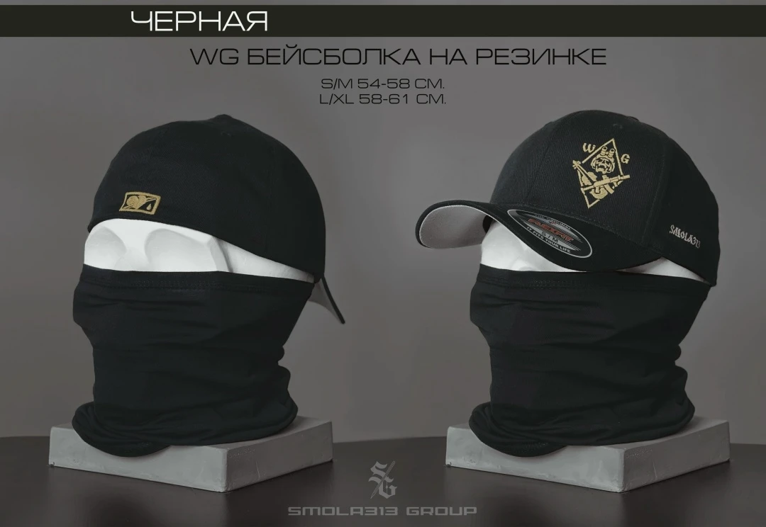 Бейсболка Чёрная WG резинка. Размер L/XL.