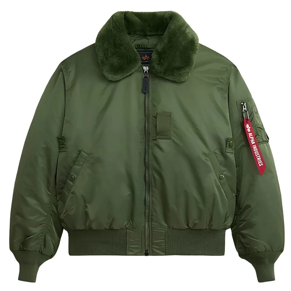 Бомбер Alpha B-15 Flight Jacket - это американская классическая куртка бомбер образца 1950 года B-15 с меховым воротником. - Отстегивающийся меховой воротник - синтетический мутон. - Плотный 100% авиационный нейлон с водоотталкивающей пропиткой.- Утеплитель – высококлассное полиэстерное волокно.- Два нагрудных прорезных кармана на кнопках и два внутренних. - Карман на молнии и отделение для шариковых ручек на рукаве.- Фирменный красный флажок с надписью "Alpha Industries" либо "Remove Before Flight" в зависимости от года выпуска куртки.- Эластичные трикотажные пояс и манжеты. - Фирменная металлическая молния Alpha.