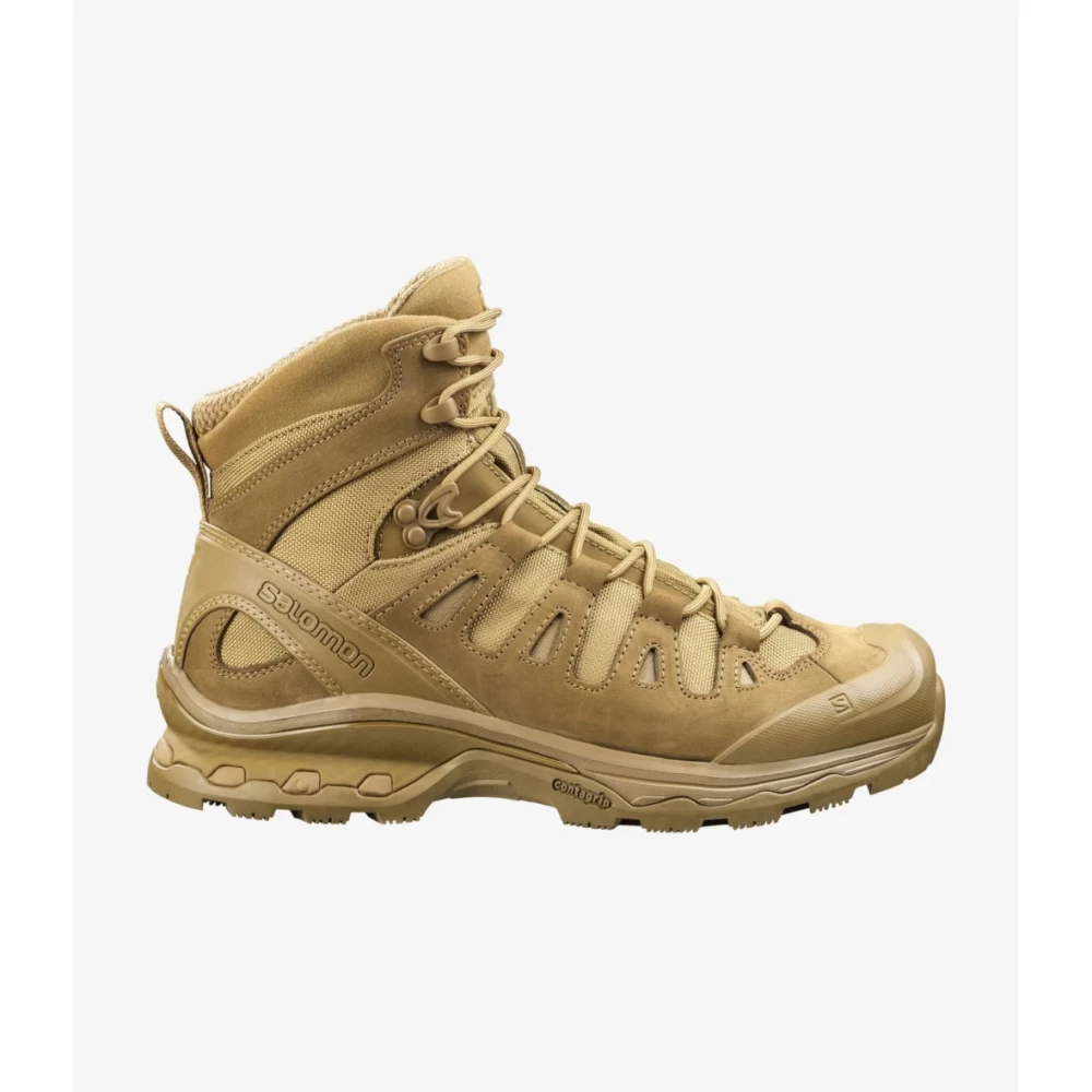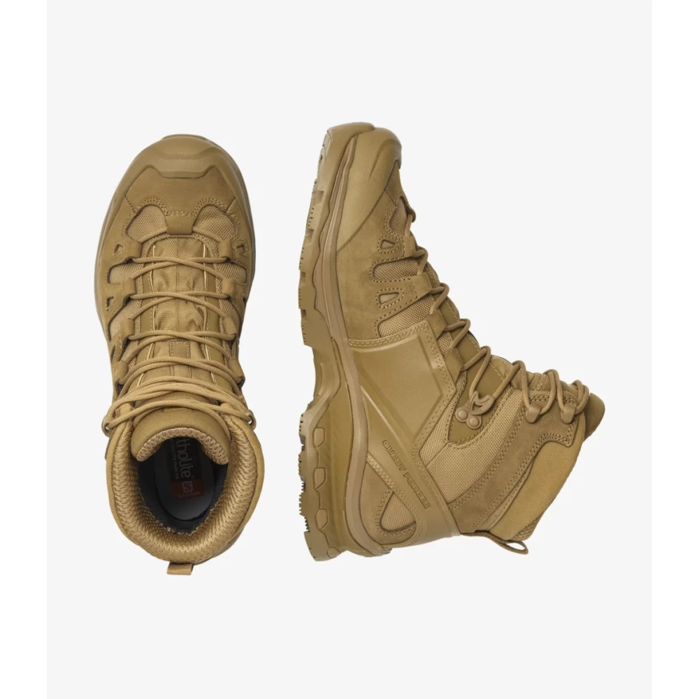 Ботинки Salomon QUEST 4D GTX FORCES 2 - это прочные и легкие ботинки для пересеченной местности и прогулки в горных районах. Тактическая серия модели QUEST 4D разрабатывалась для военных и соответсвует высоким стандартам качества специальной обуви. ISO 20344: 2011 - Подошва устойчивая к проколамСлой устойчивого к проколам материала, добавленный к подошве, предотвращает проникновение острых предметов в нижнюю часть обуви.ISO NORM 2419: 2012 - кожа толщиной 2,0 ммБолее толстая, чем обычная кожа для обуви, для большей прочности. - Комфортная колодка обуви (Sensifit)Разработанные на основе опыта трейлового бега, Sensifit охватывает всю зону стопы, обеспечивая плотное и удобное прилегание к ногам любой формы. - СтабильностьПодошва Salomon 4D Advanced Chassis обеспечивает сцепление ботинок на пересеченной местности, снижая утомляемость и обеспечивая комфорт во всех походах. - НадежностьРисунок подошвы Contagrip® от Salomon имеет шевронный узор в виде перевернутого шеврона, позволяющий удерживать ее на мокрой, рыхлой, твердой или сухой поверхности. Особенности модели: - EnergyCell - Высококачественная пена EVA, обеспечивающая гашение ударов. - Стелька OrthoLite®, принимает форму вашей стопы, обеспечивает превосходную амортизацию, а также воздухопроницаемость и долговечность, повышая комфорт обуви. - Закрытые крючки - Для тактического использования эти закрытые крючки снижают риск зацепления за веревки и т. д. - Неотражающие материалы - для тактического использования. Не блестят и не бликуют. - GORE-TEX сохраняет ноги сухими - как снаружи, так и изнутри.