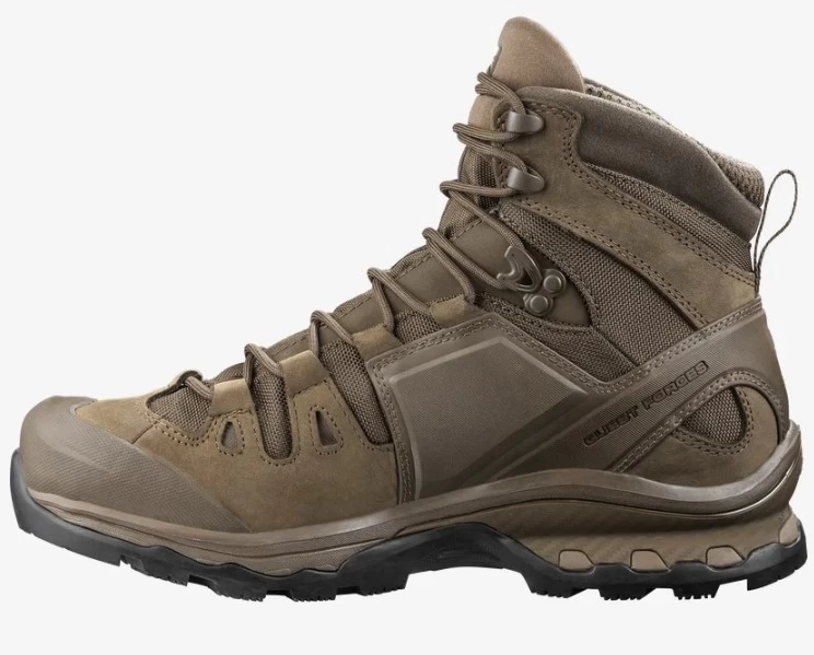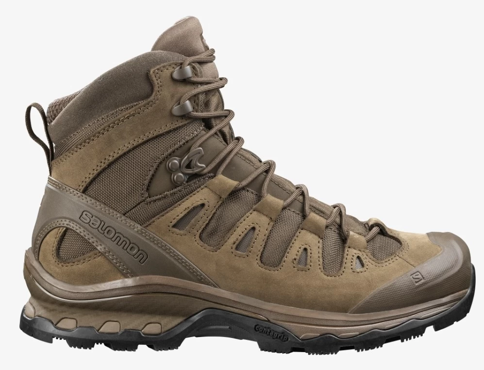 Ботинки тактические Salomon Quest 4D Forces 2 EN прочные и легкие ботинки для пересеченной местности и прогулки в горных районах.Тактическая серия модели QUEST 4D разрабатывалась для военных и соответствует высоким стандартам качества специальной обуви:ISO 20344: 2011 - Подошва устойчивая к проколамСлой устойчивого к проколам материала, добавленный к подошве, предотвращает проникновение острых предметов в нижнюю часть обуви.ISO NORM 2419: 2012 - кожа толщиной 2,0 ммБолее толстая, чем обычная кожа для обуви, для большей прочности.Особенности:- Комфортная колодка обуви (Sensifit).Разработанные на основе опыта трейлового бега, Sensifit охватывает всю зону стопы, обеспечивает плотное и удобное прилегание к ногам любой формы;- Стабильность.Подошва Salomon 4D Advanced Chassis обеспечивает сцепление ботинок на пересеченной местности, снижая утомляемость и обеспечивая комфорт во всех походах;- Надежность.Рисунок подошвы Contagrip® от Salomon имеет шевронный узор в виде перевернутого шеврона, позволяющий удерживать ее на мокрой, рыхлой, твердой или сухой поверхности;- EnergyCell - Высококачественная пена EVA, обеспечивающая гашение ударов;- Стелька OrthoLite®, принимает форму вашей стопы, обеспечивает превосходную амортизацию, а также воздухопроницаемость и долговечность, повышая комфорт обуви;- Закрытые крючки. Для тактического использования эти закрытые крючки снижают риск зацепления за веревки и т. д.;- Неотражающие материалы - для тактического использования. Не блестят и не бликуют.Характеристики:Подошва: резинаМатериал верха: кожа + текстильВысота подошвы (передней части стопы): 26 ммВысота подошвы (пятки): 28 ммВес: 655 гСистема шнуровки: стандартные шнурки.