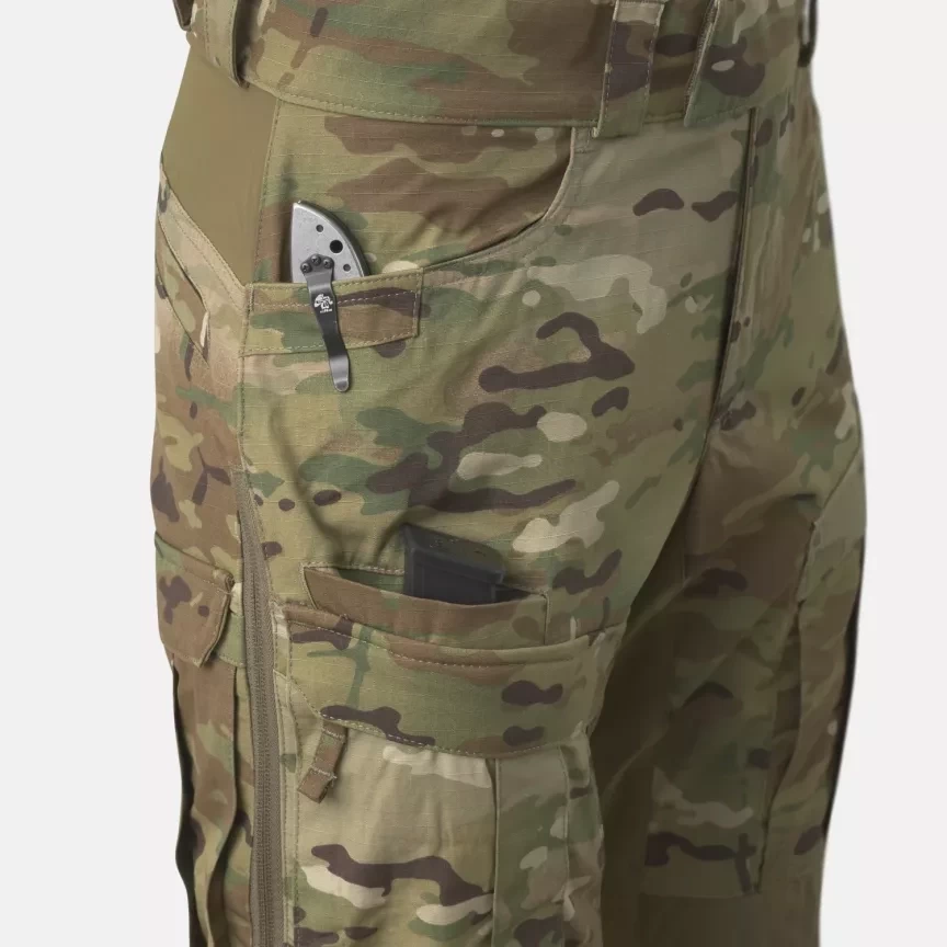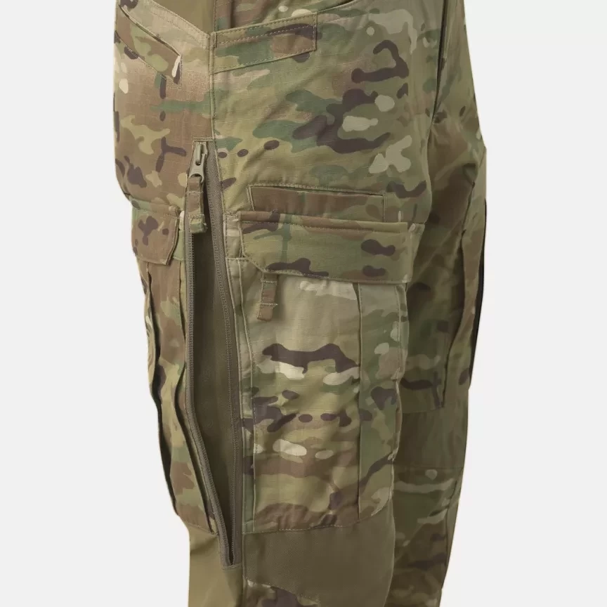 Брюки MCDU (Modern Combat Duty Uniform) — наш ответ на ожидания от современной боевой униформы. Вместе с боевой рубашкой MCDU они образуют первую линию защиты, обеспечивая максимальный комфорт и функциональность в любых условиях. Эта модель изготовлена из прочной, но дышащей ткани NyCo RipStop, состоящей из 50% хлопка и 50% нейлона. Эта смесь и усиливающее плетение RipStop обеспечивают воздухопроницаемость и устойчивость к разрывам и истиранию. В ключевых зонах (талия, промежность и задняя часть колен) мы использовали вставки из материала Versastrech. Он быстро сохнет и обладает высокой воздухопроницаемостью. Область колен усилена тканью Cordura 500D с прорезями для защитных вставок. Благодаря дополнительным шнуркам, расположенным под коленом и внизу штанины, брюки легко регулируются по ноге. Дизайн брюк вдохновлён униформой польских воздушно-десантных войск, разработанной в конце 1950-х годов. 12 карманов позволяют разместить снаряжение. Это решение делает брюки ещё более функциональными, особенно в тёплые дни или во время длительных прогулок.