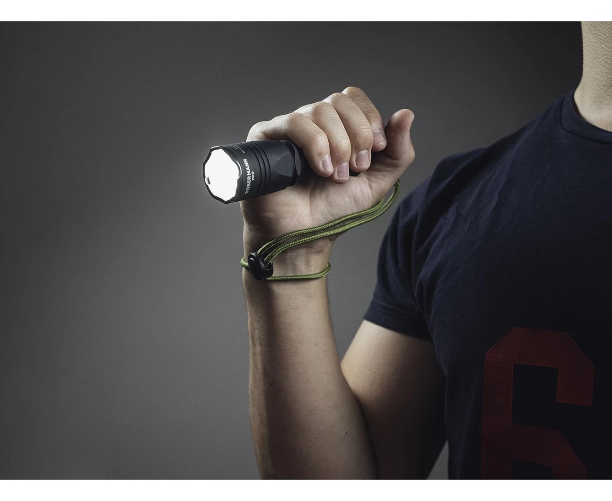 Dobermann Pro — это модель с узким углом света и плавным переходом между центральным пятном и боковой засветкой. Сочетание компактного корпуса и впечатляющих характеристик светового потока делает Dobermann Pro фонарем 2 в 1 для тактического использования и на каждый день. Фонарь яркостью в 1400 люмен лучше всего подходит для решения задач на средних дистанциях в 100-200 метров (максимальная дистанция света 363 метра). Dobermann Pro можно брать с собой в продолжительные поездки или на природу. Как и все модели обновленной тактической линейки, это готовое высокотехнологичное решение с аккумулятором и магнитным кабелем для зарядки от любого USB источника питания. Стандартный диаметр корпуса в 1 дюйм позволяет использовать фонарь с дополнительными тактическими аксессуарами: любыми подствольными креплениями и оригинальными выносными кнопками. Для удобного ежедневного ношения в комплект входят прочный нейлоновый чехол, стальная клипса и ремешок на руку. DOBERMANN PRO — ФОНАРЬ 2 В 1 ТАКТИЧЕСКИЙ Выдерживает отдачу оружия любого калибра благодаря улучшенным пружинам и размещению драйвера в усиленной капсуле с защитным компаундом Стандартное тело диаметром в 1 дюйм совместимо с любыми аксессуарами, в том числе с оригинальной магнитной выносной кнопкой и магнитным подствольным креплением для быстрого снятия и установки на оружие НА КАЖДЫЙ ДЕНЬ Компактный корпус, удобный чехол, стальная клипса и ремешок на руку для ежедневного ношения и применения ПРОДУМАННАЯ КОМПЛЕКТАЦИЯ ГРИП-УПОР Травмобезопасный эргономичный силиконовый грип-упор для удобного тактического хвата ЧЕХОЛ Сверхпрочный нейлоновый чехол с несколькими вариантами фиксации: на ремень любой ширины, на крепление Molle, на снаряжение благодаря прочному стальному кольцу КЛИПСА Стальная клипса с износостойким черным титановым покрытием для крепления на одежде, снаряжении или ремне РЕМЕШОК НА РУКУ Ремешок на руку из сверхпрочного паракорда с возможностью регулировать размер и стальным карабином для быстрого снятия и установки на фонарь НОВЫЕ ВОЗМОЖНОСТИ DOBERMANN PRO Впечатляющие для такого размера характеристики света: специальный прецизионно рассчитанный рефлектор в компактной голове для диода модификации High Intensity, обеспечивающего в 1.5 раза более высокую дальность света по сравнению с обычным диодом, и закаленное стекло с просветляющим покрытием создают узкий луч света с плавным переходом между центральным пятном и боковой засветкой при яркости в 1400 люмен. Диаметр пятна света составляет 10 метров на расстоянии 100 метров. Обновленная электроника и прошивка: оптимизировано время работы и усилена яркость. Новая тактическая кнопка: бесшумная электронная кнопка исключает демаскировку на охоте или во время спецопераций. Быстрая магнитная зарядка: комплектный аккумулятор 18650 Li-Ion 3500 мАч заряжается за 3 ч 40 мин. Улучшенные пружины: использование новых пружин для лучшей защиты аккумулятора и драйвера и увеличения эффективности работы. Повышенная надежность: особое размещение и фиксация драйвера в теле фонаря. Стильный корпус: матовое анодирование, лаконичный дизайн, брендирование в новом корпоративном стиле. Расширенная комплектация: аккумулятор высокой емкости 3500 мАч и быстрая магнитная USB-зарядка в комплекте. Фонарь готов к использованию сразу из коробки. Совместимость с магнитной выносной кноп