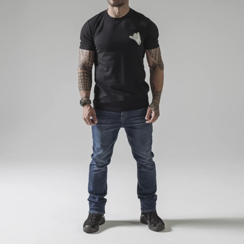 Футболка T-shirt Direct Action Shaka в цвете Black – это стильная модель от польского бренда Direct Action, предназначенная для повседневного ношения и активного отдыха. Изготовлена из 100% натурального хлопка высокого качества с плотностью 165 г/м², она обеспечивает легкость, долговечность и отличную вентиляцию, что делает ее комфортной в теплую погоду. Классический крой с короткими рукавами и круглым вырезом гарантирует свободу движений. На груди слева размещена печатная графика с изображением жеста "Shaka", популярного в тактических и серферских кругах, которая не теряет цвета после стирок и длительного использования. Область вокруг шеи обработана мягкой лентой, предотвращающей натирание и растяжение ткани. Характеристики: Материал: 100% хлопок Плотность: 165 г/м² Цвет: Black Особенности: Печатная графика "Shaka", классический крой, мягкая лента вокруг шеи Производитель: Direct Action, Польша