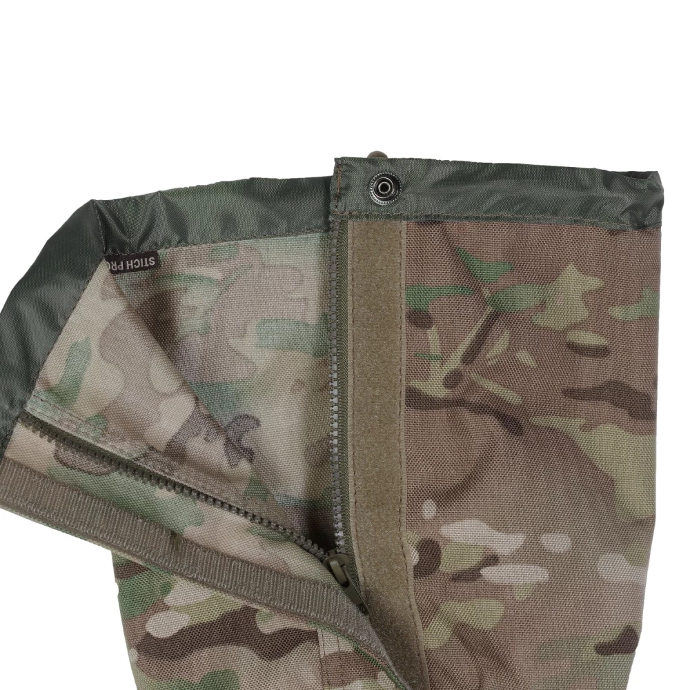 Полевые гамаши производства Stich Profi. Предназначены для защиты верха ботинок и низа штанин от загрязнений, воздействия осадков и внешних воздействий. Предотвращают попадание грязи, снега и влаги внутрь ботинка. Изготовлены из 100% нейлона (аналог Кордуры) в различных расцветках, застёгиваются на молнию, прикрытую клапаном на контактной текстильной застёжке (дублируется двумя кнопками в верхней и нижней части для надёжности), оборудованы утяжкой в верхней части для предотвращения попадания грязи, мусора и осадков через верх. Имеют тросик и крючок для фиксации к обуви
