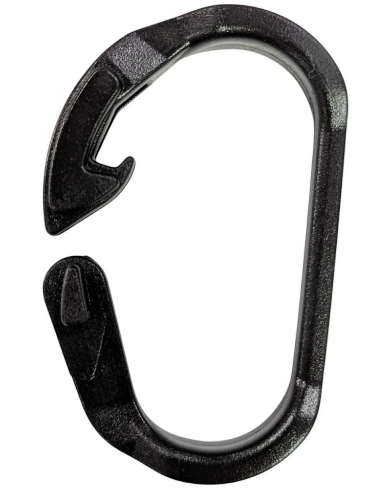 Самофиксирующийся карабин небольшого размера (5.6 см) для крепления мелочевки. Фиксируется сам на себя, без дополнительных деталей (муфта или пружина)Цельнолитая конструкция в которой нечему ломаться (защелка или задвижка отсутствует)Фиксируется и раскрывается в одно движение, можно оперировать одной рукой Технические характеристики:Длина: ~53-56 мм, Ширина: ~31мм, Вес: 5г