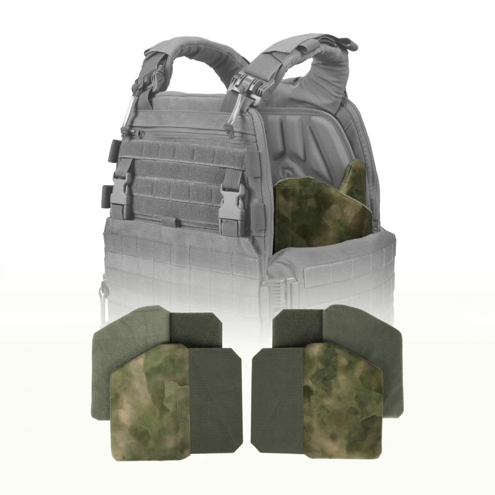 Комплект "Рубин" предназначен, как дополнение к плитоносцу. С помощью данного комплекта, значительно увеличивается площадь защиты тела. Противоосколочные пакеты выполнены из современного баллистического материала СВМПЭ. В ходе проводимых сертификационных испытаний показал высокий результат V50% непробития поражающих элементов не менее – 550м/с. Данный результат подтвержден сертификатом государственного образца №0060517. Внимание! Любые самостоятельные изменения (вскрытие, надрезы, обрезка под другие размеры) аннулирует действие сертификата, и ведет к потере заявленных характеристик. Комплект состоит из четырех элементов, которые крепятся к плитнику с помощью липучки Велкро. Перед установкой данных панелей, КАПы нужно снять и закрепить их поверх панелей. Габариты одной панели (ШxГxВ): 220х160х10 мм. Общий вес: 635 г.