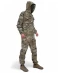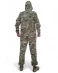 Костюм используется в качестве маскировочного костюма, состоящего из куртки и брюк.Куртка- центральная бортовая застежка на молнию- нижние фигурные накладные карманы с наклонным входом- спинка прямая, цельнокроеная- рукава прямые, низ собран с помощью эластичной резинки- по низу куртки расположена кулиса- капюшон втачной с кулисой по лицевому срезуБрюки:- прямые на поясе, собранном фиксированной эластичной резинкой- в верхней части расположены карманы, с отрезным бочком- низ брюк собран фиксированной эластичной резинкой Материал: сорочечная ткань (65% полиэфир, 35% хлопок), плотность 120 г/м2