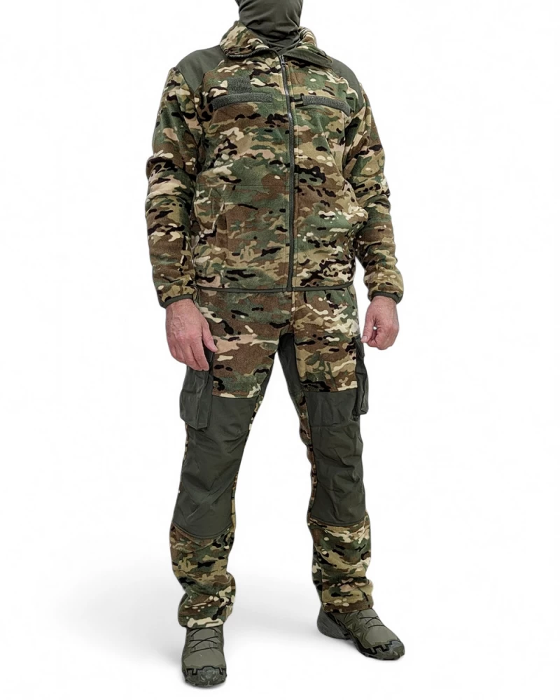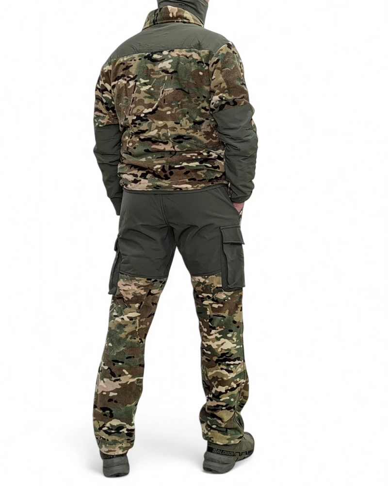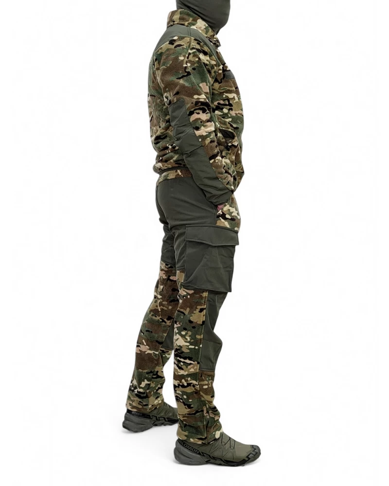 Костюм тактический флис подойдет для военных, а также для любителей охоты, рыбалки и туризма. Костюм выполнен из высококачественного флиса плотностью 300 г/м², что обеспечивает тепло и комфорт даже в холодную погоду. Одной из особенностей костюма являются усиленные плечи, локти и колени, которые обеспечивают прочность и износостойкость, а также дополнительную защиту от ветра и холода. Температурный режим от -5 до +15°С делает костюм подходящим для демисезонного периода. В комплект костюма входит куртка и брюки. Куртка имеет среднюю длину и воротник-стойку, что обеспечивает защиту от холодного ветра. На рукавах и по низу куртки имеются резинки, которые плотно прилегают и не пропускают холод внутрь. Куртка оснащена двумя наружными и двумя внутренними карманами для надежного хранения мелких предметов. На брюках также имеются 4 кармана: два верхних и 2 боковых с клапаном.
