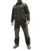 В комплект костюма входит куртка и брюки. Куртка имеет среднюю длину и воротник-стойку, что обеспечивает защиту от холодного ветра. На рукавах и по низу куртки имеются резинки, которые плотно прилегают и не пропускают холод внутрь. Куртка оснащена двумя наружными и двумя внутренними карманами для надежного хранения мелких предметов. На брюках также имеются 4 кармана: два верхних и 2 боковых с клапаном.
