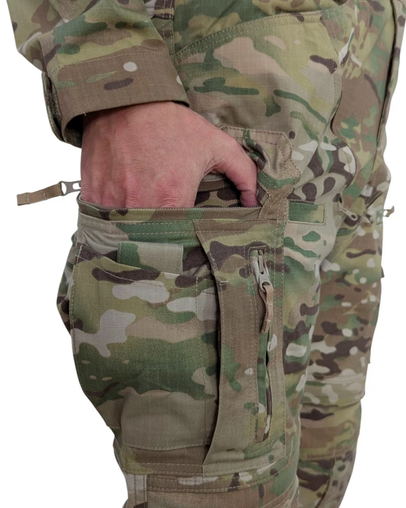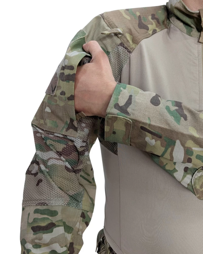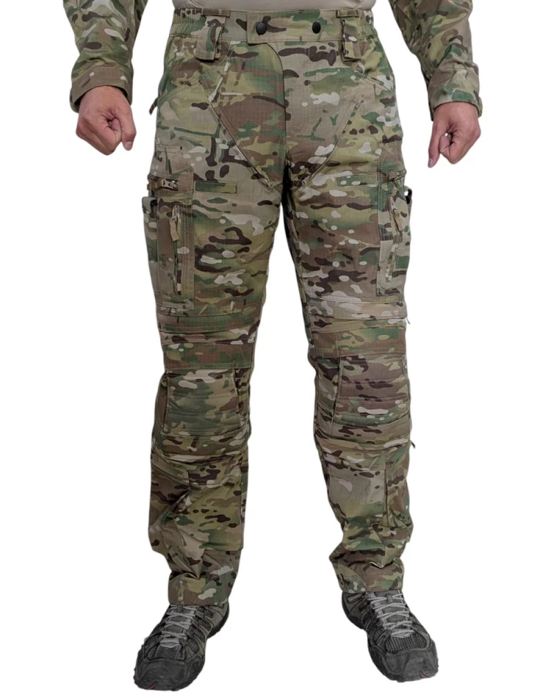 Костюм тактический Страйкер обладает характеристиками, способными справиться даже с самыми сложными задачами и операциями. Особенности рубашки: - Стратегически расположенная 3D-сетка, которая обеспечивает исключительную воздухопроницаемость. - Съемные вставки на плечах повышают вашу мобильность, так как они равномерно распределяют на плечах вес тяжело нагруженного бронежилета. - Дышащая и воздухопроницаемая набивка по низу футболки предотвращает дискомфорт от трения о область тазовой кости, обеспечивая больший комфорт при ношении снаряжения на талии. Особенности брюк: - Система защиты коленей представляет из себя мягкие энергопоглощающие наколенники, с возможностью установки жесткой вставки. - Эргономичный пояс с расширенной поясничной частью. - Двойные разъемные шлевки на кнопках. - Высокопрочный эластичный материал в седалищной и коленной областях. - Вентиляция паховой области. - Регулировка по объему голенной области молнией. - Регулировка брючных манжет по обхвату. - Фиксация брючин на шнуровке посредством Boot Hook. - Брючные манжеты усилены CORDURA. - 14 карманов: 2 фронтальных кармана; 2 потайных кармана на молнии в левом и правом фронтальных карманах; 2 задних кармана; 2 мультифункциональных набедренных кармана с двухсторонним доступом, и внутренним сегментированием; 2 открытых кармана для магазинов/под клипсу в передней части бедра; 2 кармана в голенной части с вертикальным доступом. Состав ткани: - 50% нейлон, 50% хлопок, рип-стоп (основной материал) - 3D сетка из нейлона (подмышки и внутренняя часть локтя рубашки) - 100% полиэстер (вставки)