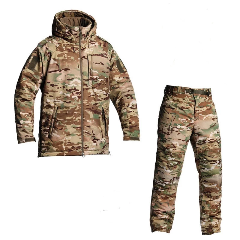 Костюм зимний (7 слой)(Multicam) состоит из куртки и брюк, выполненных из двухслойной мембранной ткани, которая в сочетании с современным синтетическим утеплителем позволяет не только эффективно сохранять тепло, но и обеспечивать высокую износостойкость. Обладает ИК ремиссией. Куртка - Погоны на плечах для знаков различия;- Центральная двухзамковая реверсная молния с внутренней планкой и защитой подбородка;- Регулировка объема по низу при помощи эластичного шнура;- Регулировка паты рукавов на текстильной застежке;- Боковые молнии для доступа к снаряжению и увеличения объема изделия;- Капюшон, регулируемый в двух плоскостях;- Локтевая зона усилена износостойкой тканью;- Один утепленный нагрудный карман на молнии;- Два боковых утепленных кармана на молнии;- Два внутренних сетчатых кармана;- Велкро-панели на нарукавных карманах для установки знаков различия. Брюки - Артикулированный крой;- Боковые молнии позволяют надевать брюки, не снимая обувь, и обеспечивают дополнительнуювентиляцию;- Колени, задняя часть и нижние накладки шагового шва усилены износостойкой тканью;- Подрезиненный пояс застегивается на кнопку и оснащен быстрой регулировкой объемапри помощи ремня с пряжкой G-hook;- Внутри пояса и нижней части штанин расположена противоскользящая силиконизированная лента;- В комплект брюк входят подтяжки. Куртка и брюки оснащены ID флажками. Костюм поставляется комплектом из двух элементов: куртка, брюки. Основной материал: Calypso 2L, 100% ПолиамидУтеплитель: 100% Полиэфир 200 г/м² (куртка); 150 г/м² (брюки, капюшон)Подкладка: 100% Полиамид