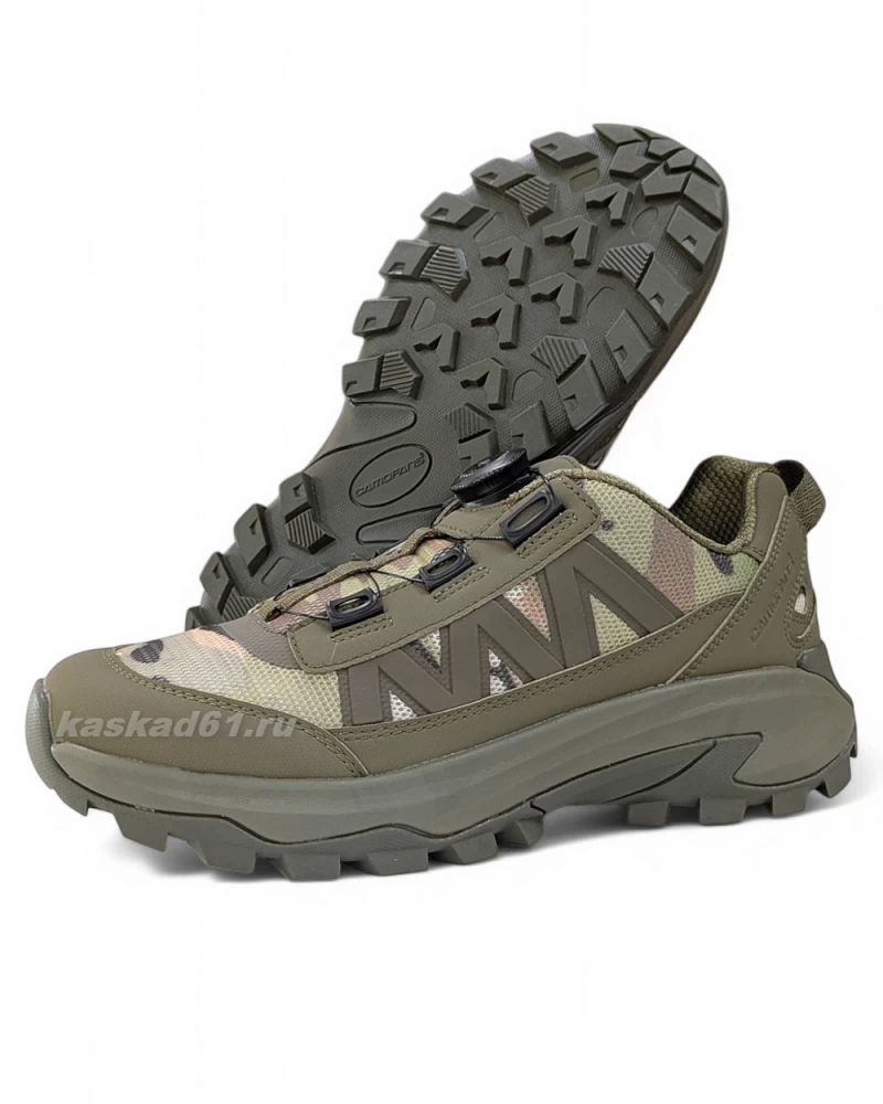 Удобные и прочные тактические кроссовки для жаркой погоды c системой быстрой шнуровки.- Верх выполнен из износостойкой дышащей ткани, подкладка из дышащих перфорированных материалов — 3D сетки.- Подошва двухслойная, промежуточный слой из ЭВА облегчает вес ботинка и снимает нагрузку во время ходьбы.- Нижняя часть подошвы из износостойкой резины с протекторами создает надежное сцепление с грунтом, с каменистыми и мокрыми рельефами.- Система быстрой шнуровки позволяет зашнуровать обувь и подогнать посадку простым вращением специального диска.- Эргономичные съемные стельки обеспечивают мягкую поддержку стопы.