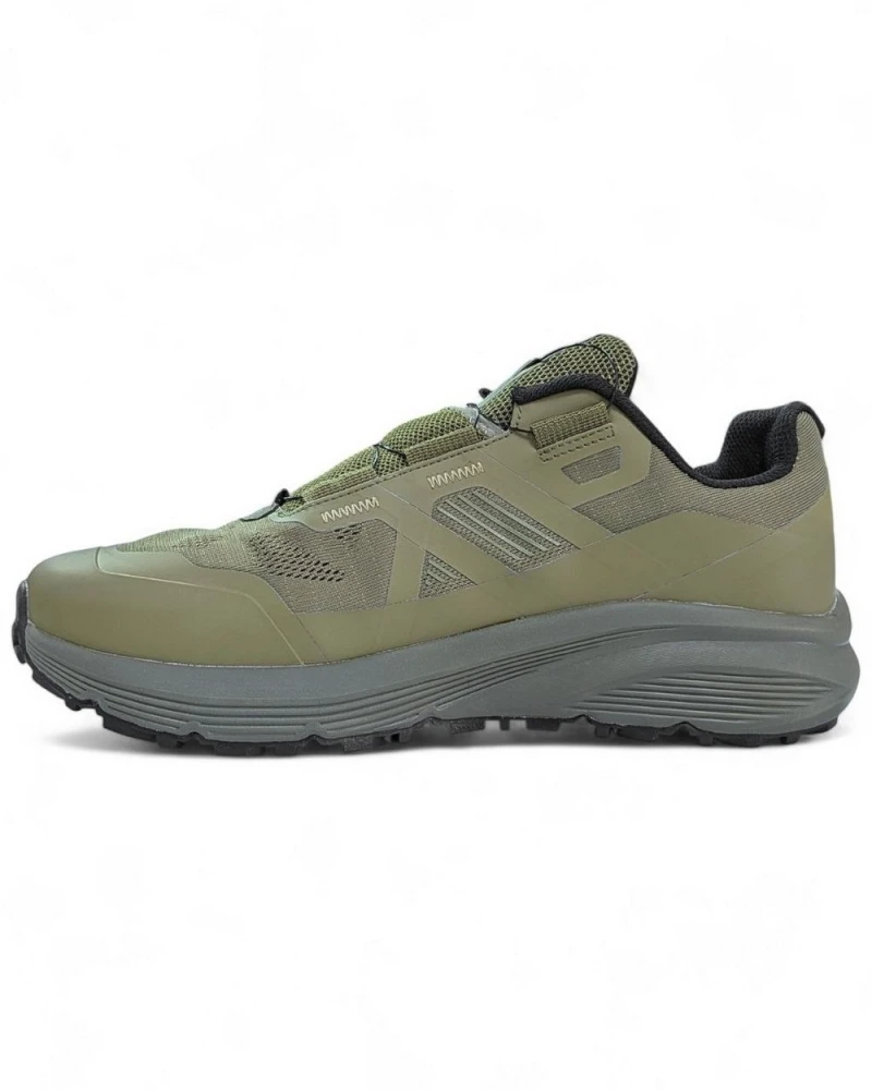 Удобные и прочные тактические кроссовки для жаркой погоды c системой быстрой шнуровки.- Верх выполнен из износостойкой дышащей ткани, подкладка из дышащих перфорированных материалов — 3D сетки.- Подошва двухслойная, промежуточный слой из ЭВА облегчает вес ботинка и снимает нагрузку во время ходьбы.- Нижняя часть подошвы из износостойкой резины с протекторами создает надежное сцепление с грунтом, с каменистыми и мокрыми рельефами.- Система быстрой шнуровки позволяет зашнуровать обувь и подогнать посадку простым вращением специального диска.- Эргономичные съемные стельки обеспечивают мягкую поддержку стопы.
