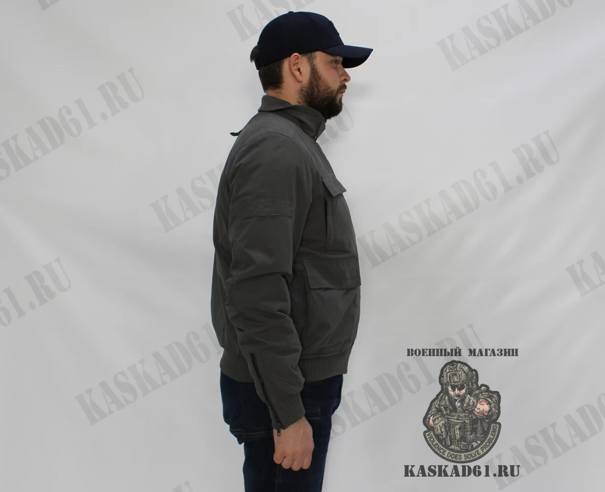 Утепленная короткая мужская куртка с трикотажными манжетами и поясом.
