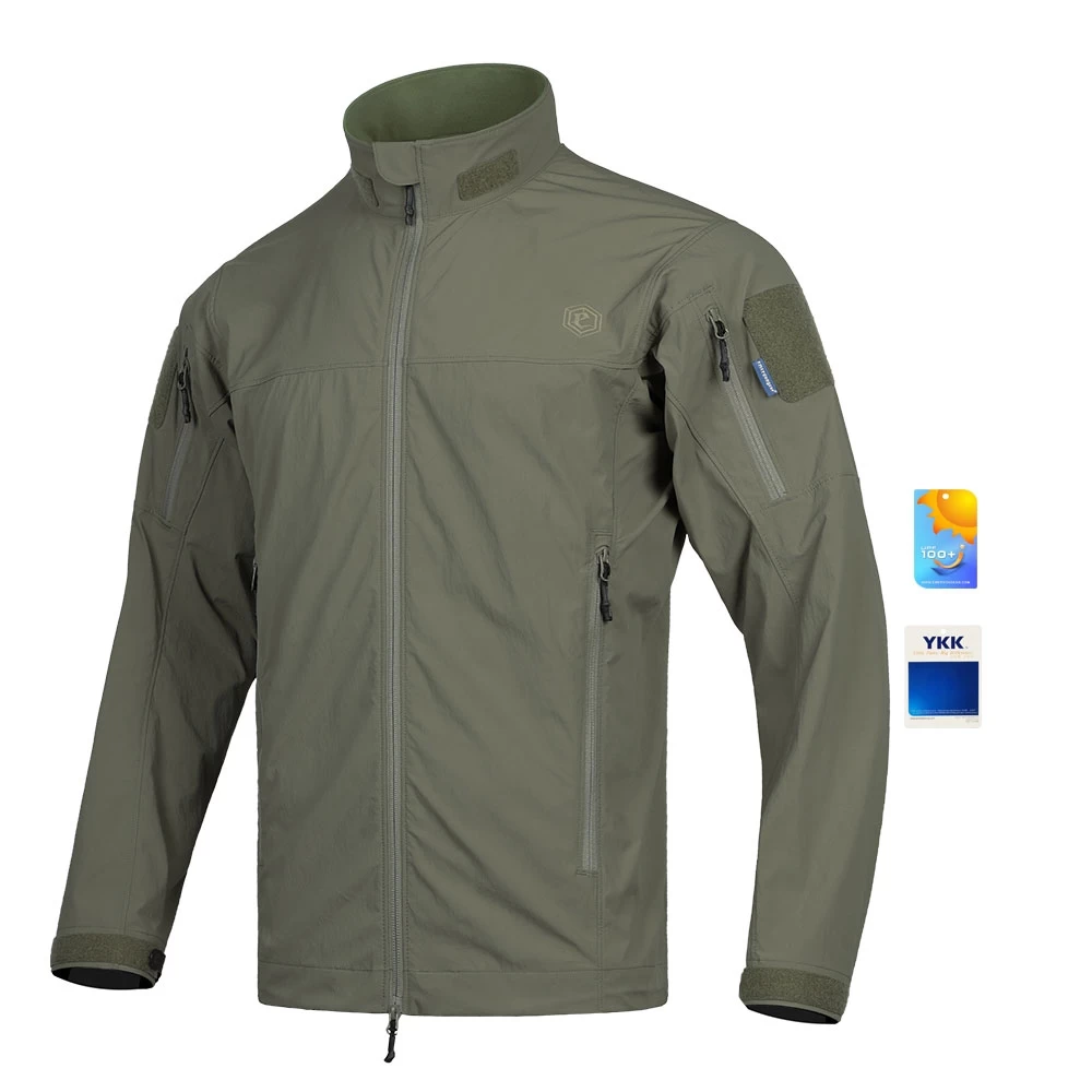 Легкая тактическая куртка Emersongear BlueLabel Falco Lightweight Jacket. Особенности: - Эргономичный крой - Водоотталкивающий и устойчивый к истиранию эластичный нейлон - Съемный капюшон - Легкая и компактная - Имеет регулируемые манжеты и низ для защиты от ветра - Карманы на рукавах на молнии с велкро панелью для нашивок - Большие нагрудные карманы на молнии с сетчатой подкладкой для лучшей воздухопроницаемости при расстегивании молний - Молнии: для молний YKK Состав: Материал: 95% нейлон, 5% спандекс.