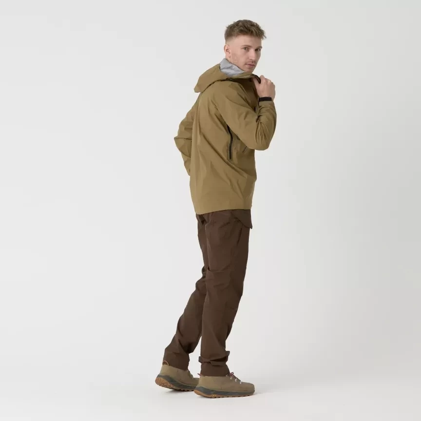 Если погода немилосердна, не пощадите и вы. Куртка Squall обеспечивает полную защиту в любых условиях — от дождя, снега и ветра — не жертвуя воздухопроницаемостью. Это самый современный внешний слой в линейке Helikon. В чём разница между софтшеллом и хардшеллом? Софтшелл защищает от лёгкого ветра и мороси благодаря DWR. Хардшелл, например, Squall, — это совершенно другой уровень: максимальная водонепроницаемость, полная защита от непогоды и отличная воздухопроницаемость. Helikon разработали мембрану TorrentStretch® как трёхслойный ламинат (3L), объединяющий внешнюю ткань, микропористую мембрану и интегрированный подкладочный слой в единый прочный материал. Её микропоры меньше капли воды, но больше молекулы пара, что позволяет удерживать воду снаружи, одновременно позволяя влаге выходить наружу. Водонепроницаемость 30 000 мм гарантирует надёжную защиту. Каждая деталь куртки Squall продумана до мелочей, чтобы вы не промокли: проклеенные швы, регулируемый капюшон с высоким воротником, водонепроницаемые молнии YKK® AquaGuard® и двухсторонняя основная молния с застёжкой-кнопкой Prym. Кроме того, Helikon добавили экологичное покрытие DWR, не содержащее вредных перфторуглеродов (PFC). Водонепроницаемость — это только половина дела. Вторая половина — воздухопроницаемость, и Squall с этим тоже справляется. Мембрана TorrentStretch® обеспечивает воздухопроницаемость 30 000 г/м²/24 часа. Чем выше показатель MVP (паропроницаемости), тем лучше влага отводится: 8000 г – хорошо подходит для отдыха, 20 000 г – отлично подходит для активного использования, 30 000 г – высшая производительность. RET (сопротивление переносу тепла через испарение): показатель Squall составляет 7, что означает отличную паропроницаемость. Вентиляционные отверстия под мышками обеспечивают дополнительную вентиляцию. В сочетании с регулируемыми манжетами, шнурками на капюшоне и утяжками на подоле, вы можете адаптировать куртку Squall к изменяющимся погодным условиям — без компромиссов. Для всех регулировок используются надежные комплектующие Woojin. Куртка Squall идеально вписывается в вашу систему многослойной одежды. Зимой её можно легко надеть поверх утеплённой куртки, например, Wolfhound Hoodie. Куртка имеет три кармана: Два нагрудных кармана, которые не будут мешать ремню рюкзака, Один внутренний карман для документов или телефона. В сложенном виде Squall легко помещается в собственный капюшон — идеально для хранения в рюкзаке. Благодаря петлевым панелям на рукавах его легко персонализировать. Мембранам необходим правильный уход: используйте моющие средства, предназначенные для технологичной одежды, избегайте стандартных стиральных порошков, регулярно обновляйте покрытие DWR, чтобы продлить срок службы куртки. Сертификаты качества BlueSign® – гарантирует экологичное производство и высочайшие стандарты безопасности. Oeko-Tex® Standard 100 — гарантирует, что куртка не содержит вредных веществ и безопасна для кожи.