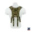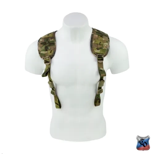 Облегчённые плечевые лямки для ременно-плечевой системы, предназначенные для ношения поверх плитника, либо полноценного бронежилета. Несмотря на свой малый вес и минимизированную конструкцию, они рассчитаны на использовании с боевым поясом, переносящим короба и ленты от ПКМ/ПКП или увеличенный б/к стрелка.• Изделие состоит из правой и левой лямки, от которых вниз уходят «хвосты» для крепления к снаряжению, а также из спинной платформы, от которой идёт ещё четыре «хвоста».• Шесть точек крепления (две спереди и четыре сзади) к тактическим поясам, либо подсумкам.• Лямки можно закрепить как к специальным точкам крепления на поясе, так и просто продев их в ячейки Molle или пропустив через них ремень.• Левая и правая лямки, а также спинная платформа представляют из себя сэндвич. Внешняя ткань Cordura, либо Кордон (зависит от расцветки), далее идёт изолон толщиной 2 мм и подложка из жёсткой сетки.• Лямки имеют эргономичную форму. Ширина лямок в самой узкой части – 7,5 см, в самой широкой – 9,5 см.• Для крепления дополнительного снаряжения к каждой лямке пришито по 4 ременных ленты. Верхние две предназначены для крепления карабинов, тангент или PTT кнопок. Нижние, шириной в 2 ячейки Molle, для крепления сумок под радиостанции или ИПП.• Спинная платформа состоит из трёх горизонтальных лент, разделённых равным промежутком, по 4 ячейки Molle на каждой.• В верхней части спинной платформы пришита ручка для переноски. Она предусматривает, что при необходимости эвакуации раненого бойца с поля боя к ней будет закреплён карабин от эвакуационной стропы.• Лямки и спинная платформа по краям окантованы лентой.• Универсальный размер. Регулировка длины лямок позволяет настроить их под любой рост оператора (от 150 до 210 см).• В точках крепления «хвостов» из ременной ленты к лямкам, либо спинной платформе, установлены пластиковые пряжки-крылья. Через них продевается ременная лента для её фиксации, а также они позволяют быстро отрегулировать лямки по росту на себе.• Вес плечевых лямок из ткани плотностью 500D ~ 340 г.