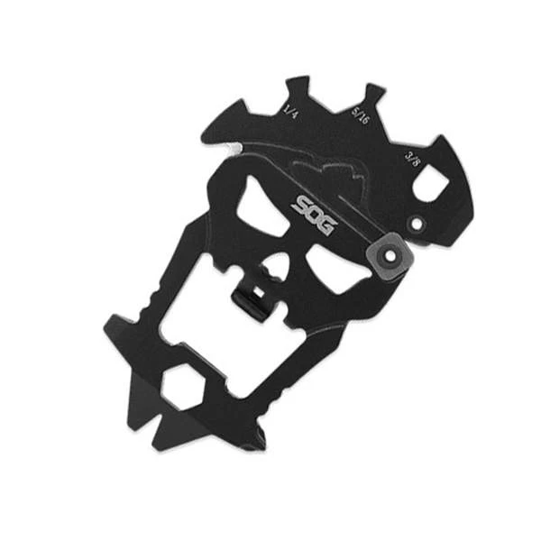 Карманный полностью металлический мультитул SOG MacV Tool (SM1001) выполнен из цельного куска китайской нержавеющей стали марки 3Cr13, твёрдостью 52-55 HRC. Несмотря на свои небольшие размеры, инструмент предусматривает 12 функций: открывалку для бутылок, точилку, ломик, лезвие для снятия оплётки с проводов небольшого диаметра, а также набор гаечных ключей и отвёрток.