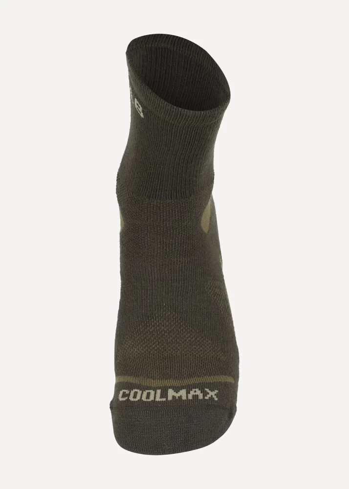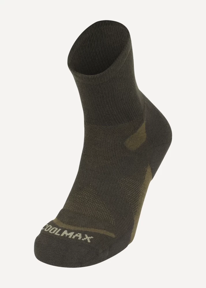 Любителям мультигонок или ориентирования, пешеходникам и горным туристам предлагается модель, которая не рассчитана на сильные морозы, но состав материала и зональное распределение различных волокон, а также отсутствие швов, позволяют забыть о ногах и сосредоточиться на дороге или окружающих красотах. Основной процент в материале носков составляют влагоотводящие волокна Coolmax, за счет этого ноги останутся сухими во время движения, если только не наступать в воду или не надевать совсем уж воздухонепроницаемую обувь, но и в этом случае, носки быстро высыхают. Процент эластичного волокна spandex меньше, чем, например, в модели Cascade v.2, но зона его распределения расположена таким образом, что эластичный бандаж плотно охватывает ногу крест накрест. Таким образом, носки не елозят и не сбиваются на ходу. Нейлоновые волокна укрепляют зоны, которые больше всего подвержены истиранию. Носки мягкие, легкие, приятные и не требуют сложного ухода (для стирки не требуется специальных моющих средств). Цена для носков подобного класса очень щадящая. Нитки, немного вылезающие наружу на стыке зон различного плетения и цвета, являются технологической особенностью, не влияющей на прочность и функционал носка. Это происходит при начальной носке и первой стирке, далее процесс купируется. При этом ничего в данных областях не расходится, носки долго не теряют потребительских свойств (при условии соблюдения рекомендаций символов по уходу). Для гарантии износостойкости носка не рекомендуем обрезать данные нитки. Особенности В производстве носков компании Сплав сочетаются новейшие технологии производства, собственные лабораторные исследования, современный дизайн и тестирование продукции в реальных условиях. Мы уделяем внимание каждой детали, проверяя устойчивость материала к интенсивному износу, механическим и химическим воздействиям. Характеристики Плотные, хорошо сидящие носки, для быстрого темпа движения при средних температурах Широкая резинка надёжно фиксирует носок, а бандаж из эластичного материала на тыльной стороне стопы, расположенный крест на крест, позволяет носку «сесть по ноге» Высокое содержание волокон COOLMAX способствует ускоренному испарению избыточной влаги Наличие усиленных зон обеспечивает повышеную износостойкость Бесшовная технология создает повышенный комфорт, предотвращает натирание пальцев ног Материал: 78% coolmax 18% nylon 4% spandex Вес изделия: 39−42 р-р — 76 г 43−46 р-р — 81 г Свойства Coolmax: Coolmax — полиэстровое волокно фирмы DuPont, с четырехжильной нитью Эффективно отводит влагу с поверхности тела Cохраняет тело сухим даже во время больших физических нагрузок