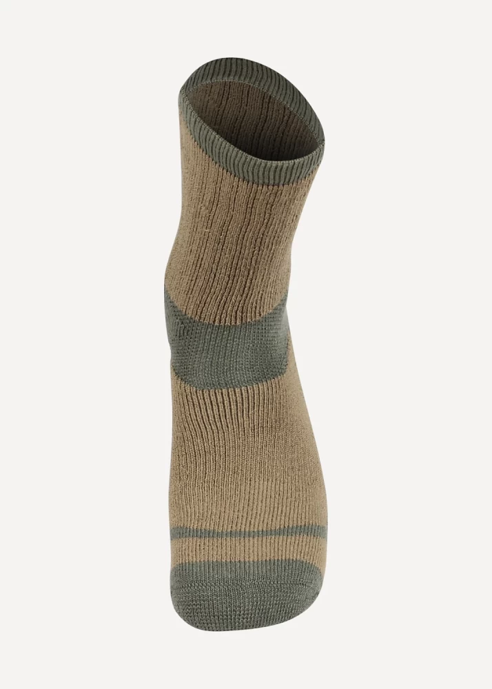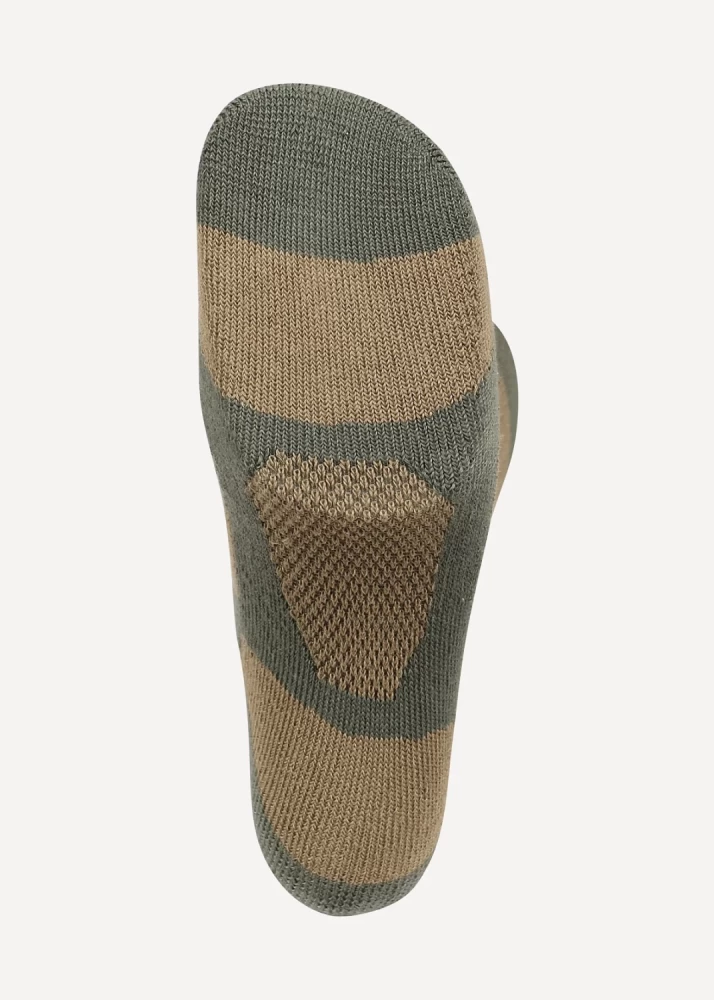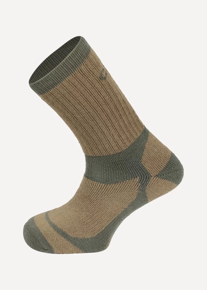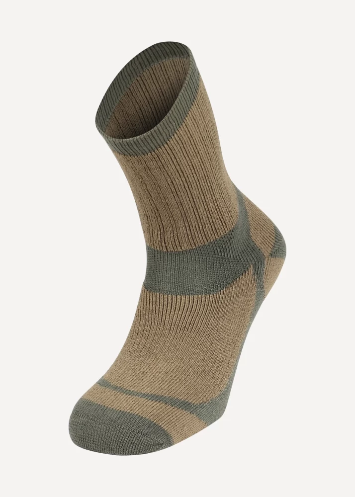Бесшовные толстые трекинговые носки для холодной погоды с большим содержанием волокон Thermolite®, адаптированные для использования с тактической обувью. Особенности В производстве носков компании Сплав сочетаются новейшие технологии производства, собственные лабораторные исследования, современный дизайн и тестирование продукции в реальных условиях. Мы уделяем внимание каждой детали, проверяя устойчивость материала к интенсивному износу, механическим и химическим воздействиям. Характеристики Расцветка является сочетанием двух распространенных защитных цветов (олива и койот) Отсутствуют лишние декоративные детали Оптимальная длина под ботинки с высоким берцем Бесшовная технология создает повышенный комфорт, предотвращая натирание пальцев ног Наличие усиленных зон с нейлоном обеспечивает повышенную износостойкость Зона с содержанием эластичного материала не позволяет носку сползать и собираться в складки Мягкие петли по всей внутренней площади носка обеспечивают теплоизоляцию и защищают ногу от натирания при длительном ношении с грубой обувью Волокна Thermolite® эффективно сохраняют необходимый температурный режим Материал: 85% Thermolite® 12% nylon 3% elastane Свойства Thermolite®: Волокна Thermolite® разработаны компанией DuPont® Мгновенно высыхает и самым эффективным образом сохраняет необходимый температурный режим, быстро реагирует на изменения температуры тела и предотвращает перегрев или переохлаждение человека Прекрасно стирается в машине Не даёт усадки после стирки Держит форму после частых стирок