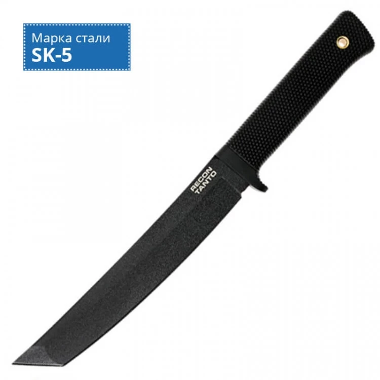 Нож Сold Steel Recon Tanto - один из самых узнаваемых образцов американского бренда. Это современный вариант "Разведчика" с японской сталью на клинке, тактическим покрытием, рукоятью из Kray-Ex и комфортной гардой. Владение им позволит решать самые разные задачи и в самых разных ситуациях. Это тот нож, который выбирают не задумываясь. Строгая форма клинка, чёрная матовость, ножевой минимализм во всей красе, всё в нём громко заявляет о статусности. Форма лезвия - американская стилизация танто, такая геометрия позволяет глубокие проникающие удары (рекомендована инструкторами ножевого боя для боевых ножей). Обух толщиной в 5мм даёт клинку огромный запас прочности. Благодаря конструкции фултанг (хвостовик идёт через всю рукоять) является отличным бивачным ножом, способным выполнять любые тяжёлые работы.Рукоять из невероятно прочного эластомера с рифленой фактурой. Надёжно лежит в руке, не выскользнет. Особенности модели: В комплекте ножны продуманной конструкции. Твердость по шкале Роквелла - 59-60 Hrc. Длина ножа - 298 см. Длина клинка - 17,8 см. Толщина лезвия - 5 мм. Вес - 255 гр. Тип заточки- Plain. Тип профиля клинка - Tanto. Материал рукояти - Kray-Ex. Материал клинка - SK-5.