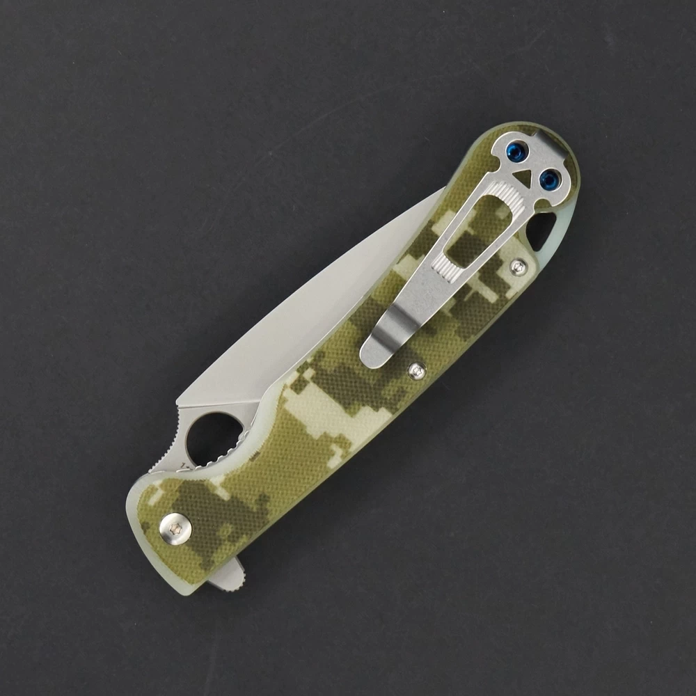 Длина в сложенном состоянии 12,1 см Общая длина 21,9 см Длина клинка - 9,9 см Толщина обуха - 3,1 мм Сталь - VG-10 Материал рукоятки - G10 Обработка клинка - Bead Blast Сведение - 0,7 мм Твердость - 58-60 HRC Модель - Arrow Цвет рукояти - Камуфляж