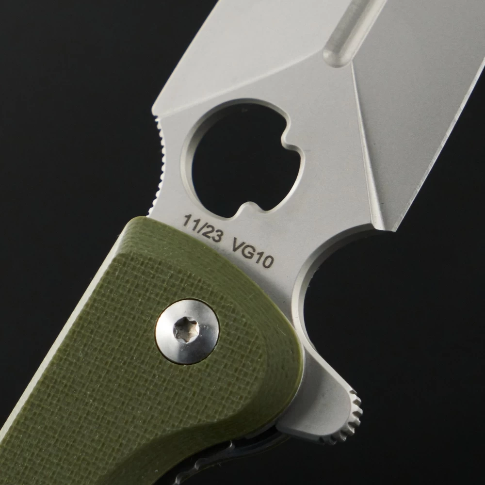 Длина в сложенном состоянии - 12,1 см Общая длина - 21,9 см Длина клинка - 9,9 см Толщина обуха - 3,1 мм Сталь - VG-10 Материал рукоятки - G10 Обработка клинка - Bead Blast Сведение - 0,7 мм Твердость - 58-60 HRC Модель - Arrow Цвет рукояти - Олива