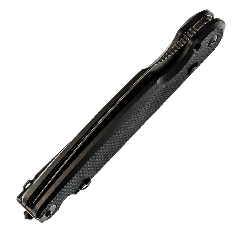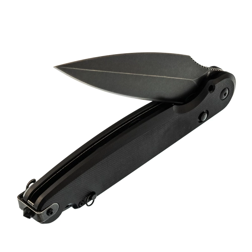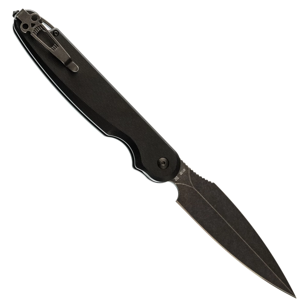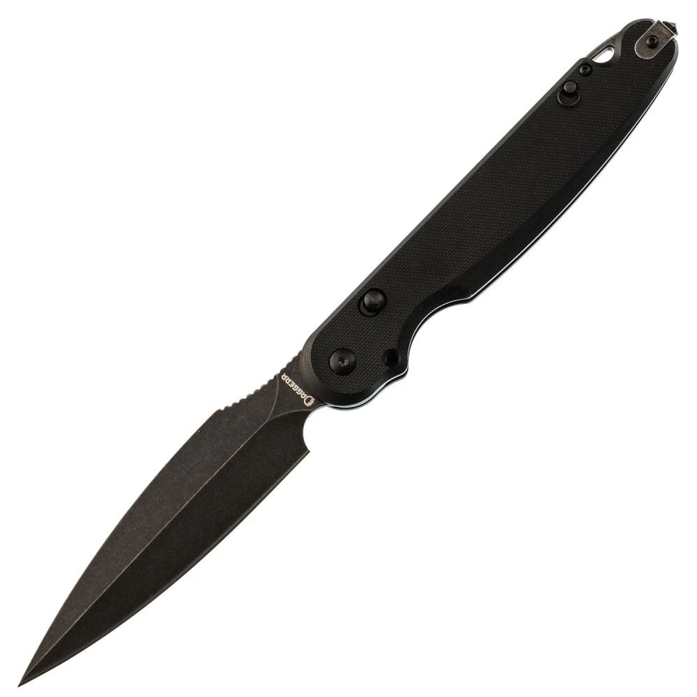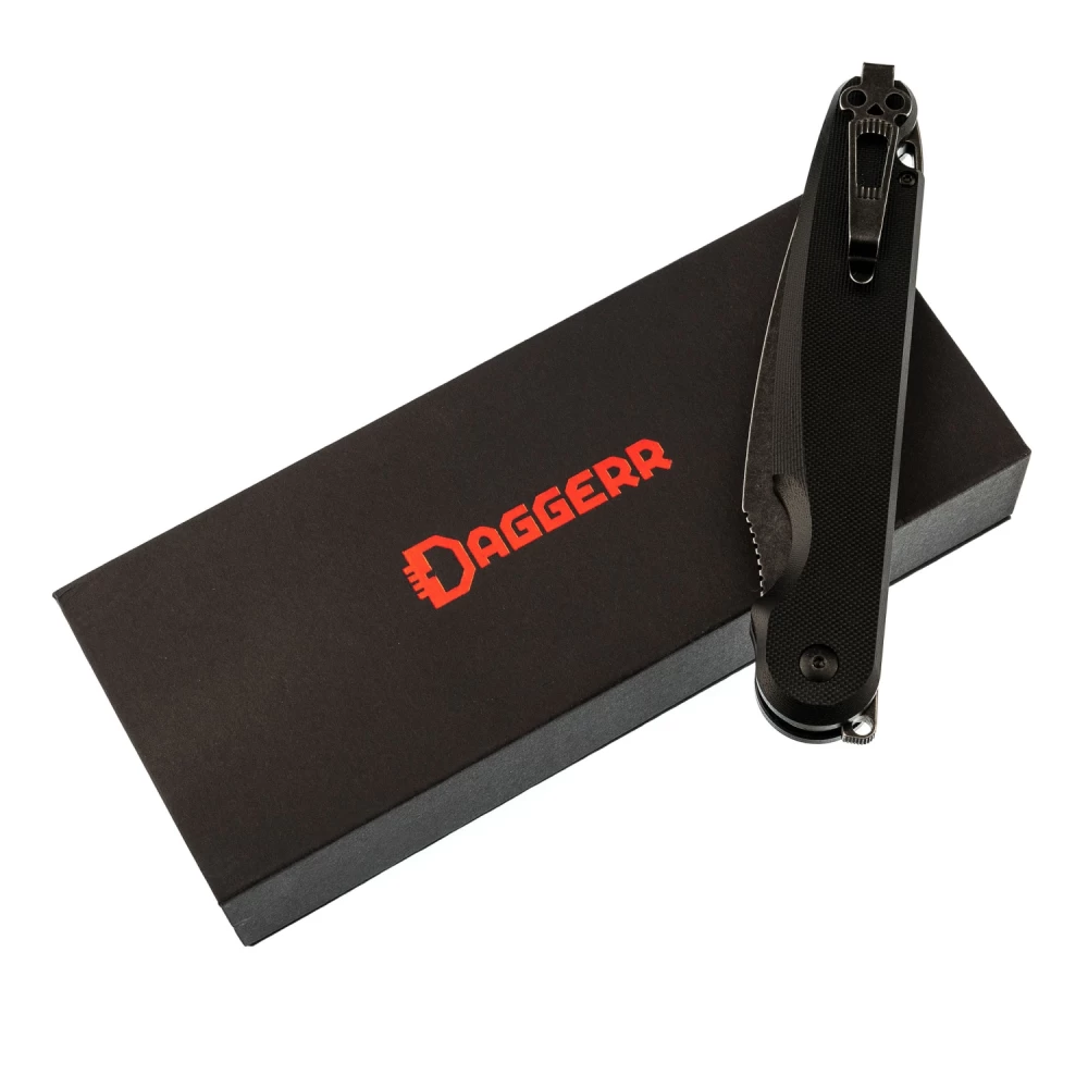 Складной нож Dagger Parrot Nestor All Black SW, G10 - это их первый нож с кнопочным замком. Цель этого нового замкового механизма - не допустить попадания пальцев на лезвие, при этом его очень легко закрыть одной рукой. В конструкции этого замка также предусмотрен штифт, который превращает этот складной нож в нож с фиксированным лезвием. Просто открутите винт у петли для шнурка и поместите его в отверстие у подпальцевой выемки, пока ваш нож открыт. Теперь у вас есть полноразмерный фиксированный нож, который можно сложить и положить куда угодно! Карманная клипса для глубокого ношения заставит этот большой нож исчезнуть в кармане. Лезвие острия из инструментальной стали D2 с черным покрытием. Флиппер для удобного использования одной рукой. Рукоять из микарты со стеклобоем в нижней части. Надежный стальной кнопочный замок со штифтом.