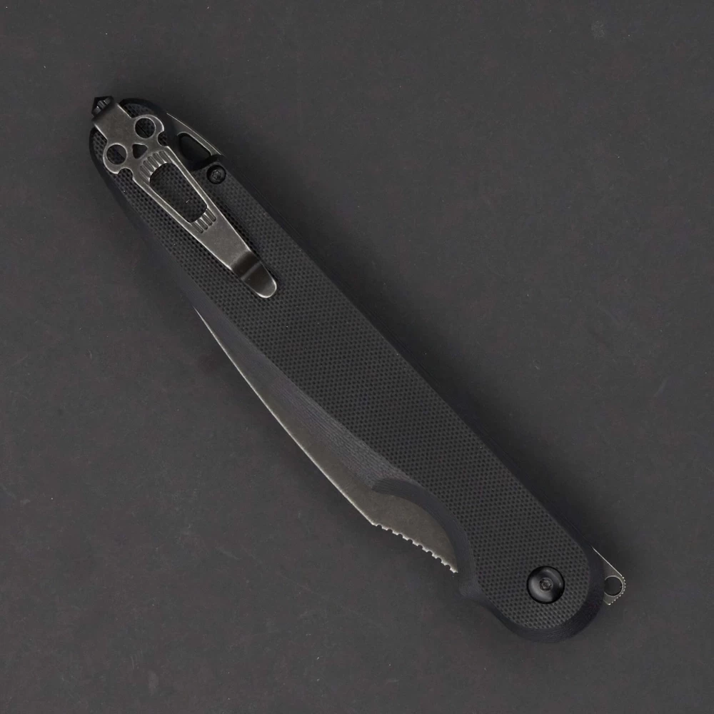 Инновационная модель от DAGGERR! В этом изделии мы постарались реализовать всё самое лучшее для городского тактического ножа. Parrot – наш первый нож с кнопочным закрытием. Этот замок – специальное изобретение нашей компании. Его преимущество в безопасности и лёгкости использования. Это массивный нож с толстым клинком - 4мм, усиленным кончиком и надежным замком, позволяющим использовать нож в тяжелой работе. В обновлённой версии Parrot 3.0 появилась важная дополнительная функция. Теперь складной нож можно превратить в полноценный фикс! Для этого нужно всего-лишь открутить закрепленный в рукояти штифт (стопорный винт) и переставить его в отверстие у осевого винта. Таким образом, нож намертво закрепляется и его можно использовать как в качестве складного, так и в виде фиксированного, в зависимости от поставленных задач В городе многие могут испугаться человека, у которого из кармана торчит нож. Клипса глубокой посадки сделает его значительно незаметнее. Продуманная эргономика. Нож удобно держать в руке. Хороший хват также обеспечивают накладки из микарты. Плавник флиппера находится на верхней боковой части изделия. Такое расположение позволяет открывать нож указательным пальцем. Кинжальная форма клинка с гриндом, который стал визитной карточкой нашей компании. Длина в сложенном состоянии - 15 см Общая длина - 27,4 см Длина клинка - 12 см Толщина обуха - 4 мм Сталь - D2 Материал рукоятки - G10 Вес - 192 гр Обработка клинка - Blackwash Модель - Parrot Цвет рукояти - Черный