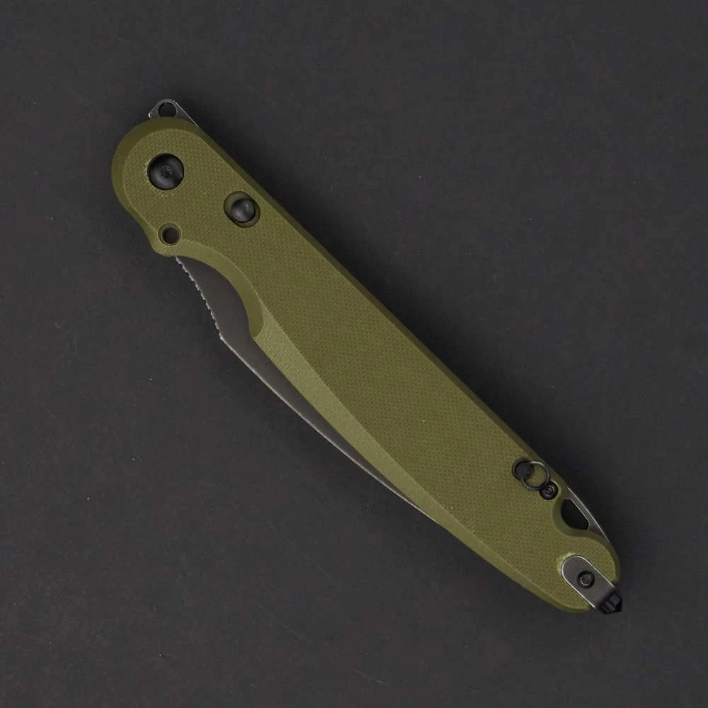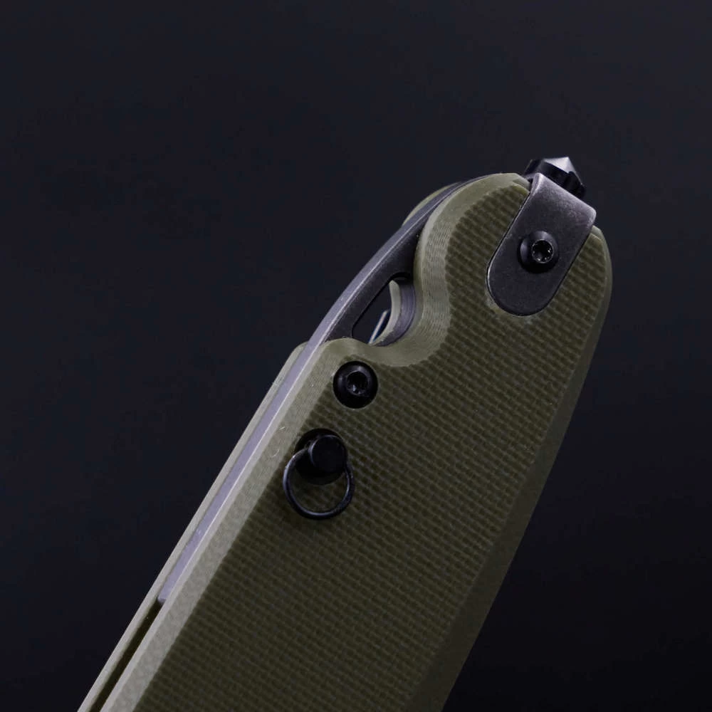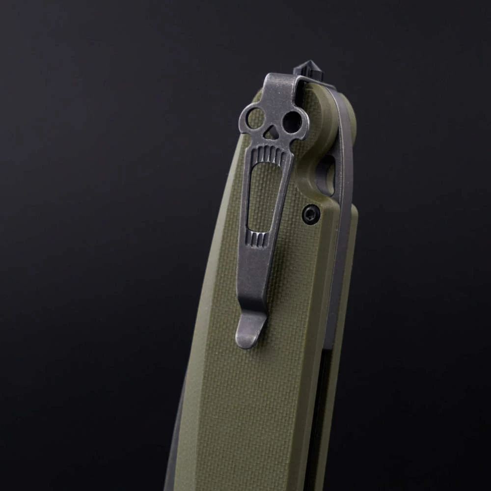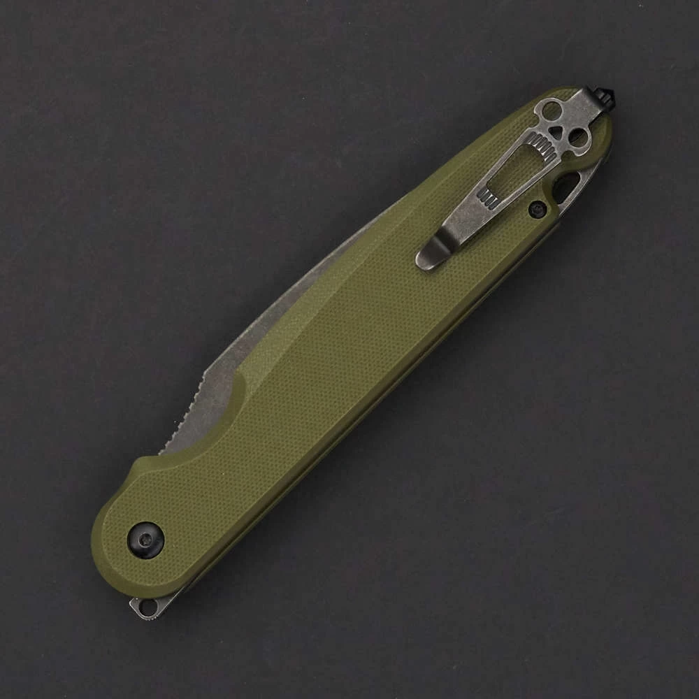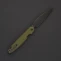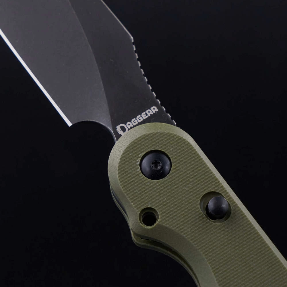Parrot – первый нож от Daggerr с кнопочным закрытием. Этот замок – специальное изобретение компании. Его преимущество в безопасности и лёгкости использования. Это массивный нож с толстым клинком - 4мм, усиленным кончиком и надежным замком, позволяющим использовать нож в тяжелой работе. В обновлённой версии Parrot 3.0 появилась важная дополнительная функция. Теперь складной нож можно превратить в полноценный фикс! Для этого нужно всего-лишь открутить закрепленный в рукояти штифт (стопорный винт) и переставить его в отверстие у осевого винта. Таким образом, нож намертво закрепляется и его можно использовать как в качестве складного, так и в виде фиксированного, в зависимости от поставленных задач. Клипса глубокой посадки делает нож значительно незаметнее в кармане. Нож удобно держать в руке. Хороший хват также обеспечивают накладки из микарты. Плавник флиппера находится на верхней боковой части изделия. Такое расположение позволяет открывать нож указательным пальцем. Длина в сложенном состоянии - 15 см Общая длина - 27,4 см Длина клинка - 12 см Толщина обуха - 4 мм Сталь - D2 Материал рукоятки - G10 Вес - 192 гр Обработка клинка - Blackwash Твердость - 58-59 HRC Цвет рукояти - Олива