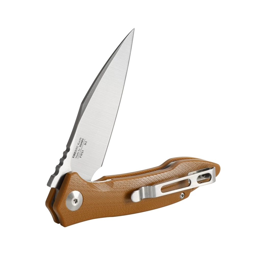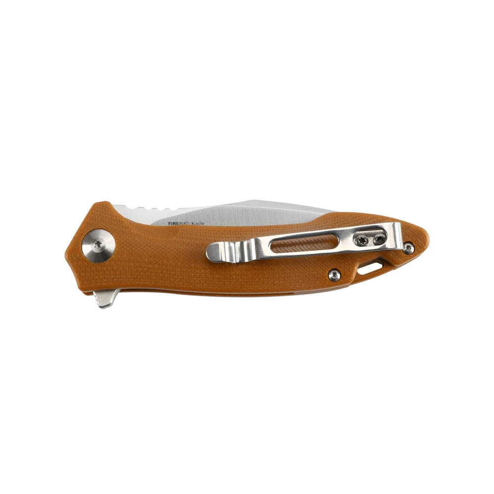 Популярный у ножеманов бренд Firebird не так давно зашел на мировой рынок. Но за этот короткий срок марка полюбилась покупателям. Коллекция ножей обрела продолжение в виде складной модели с наименованием FH71. Особенность изделия в том, что рукоятка у него представлена в 4-х вариантах цвета. А именно: в сером, зеленом, черном и коричневом. Ручка экземпляра имеет характерный изгиб для более удобного удержания в ладони. Кроме того, на ней присутствуют специфичные выемки, обладающие определенной декоративной функцией. Ручка ножа изготовлена из материала G10, за счет этого она износостойкая, защищенная от воздействия высокой температуры, влаги, и устойчивая к повреждениям. Также этот материал, который представляет собой стеклотекстолит, запросто окрашивается. Он шероховатый на ощупь. Изделие удобно ложится в руку, не смещается, не скользит. Нож относят к категории так называемых флипперов. Лезвие новинки серого цвета, поверхность клинка гладкая, форма клинка Drop Point. Ножей с подобной формой встречается немало, такие изделия часто используют охотники. Они хороши для разрезания, и также удобны для уколов. Колющая работа с инструментом особенно эффективна. Клинок экземпляра изготовлен из стали марки D2. Ее довольно часто применяют при создании продукции бренда. Это высококачественный, защищенный от коррозии, сплав, устойчивый к воздействиям среды. Ножи из подобной стали обретают прочность, надежность, и долго пребывают в эксплуатации. В длину новинка достигает почти 20 сантиметров, длина лезвия составляет 8,7 сантиметра. Толщина клинка 3,5 миллиметра, нож весит 98 грамм. Маленький и легкий инструмент пригоден для каждодневного применения. Можно брать с собой в походы, также модель годится для бытового использования. Все изделия Firebird имеют великолепную механику. Кроме того, у них есть защитные механизмы, которые делают эксплуатацию ножей безопасной и комфортной. Нож оснащен металлической клипсой. Она плотно фиксирует модель, позволяя закрепить ее на кармане, на сумке, рюкзаке. Нож оптимален для применения на охоте, в путешествии, в туристическом походе. Также можно пользоваться им в домашней обстановке. Это практичный EDC-ник, очень твердый и выносливый. Универсален и эффективен. Компактные размеры модели позволяют носить ее в кармане. Маленький помощник всегда находится под рукой. Характеристики складная модель-флиппер нож весит 98 грамм в длину изделие достигает 19,9 сантиметра длина лезвия 8,7 сантиметра клинок сделан из стали D2 ручка изготовлена из G10 толщина клинка 3,5 миллиметра лезвие формы Drop Point.