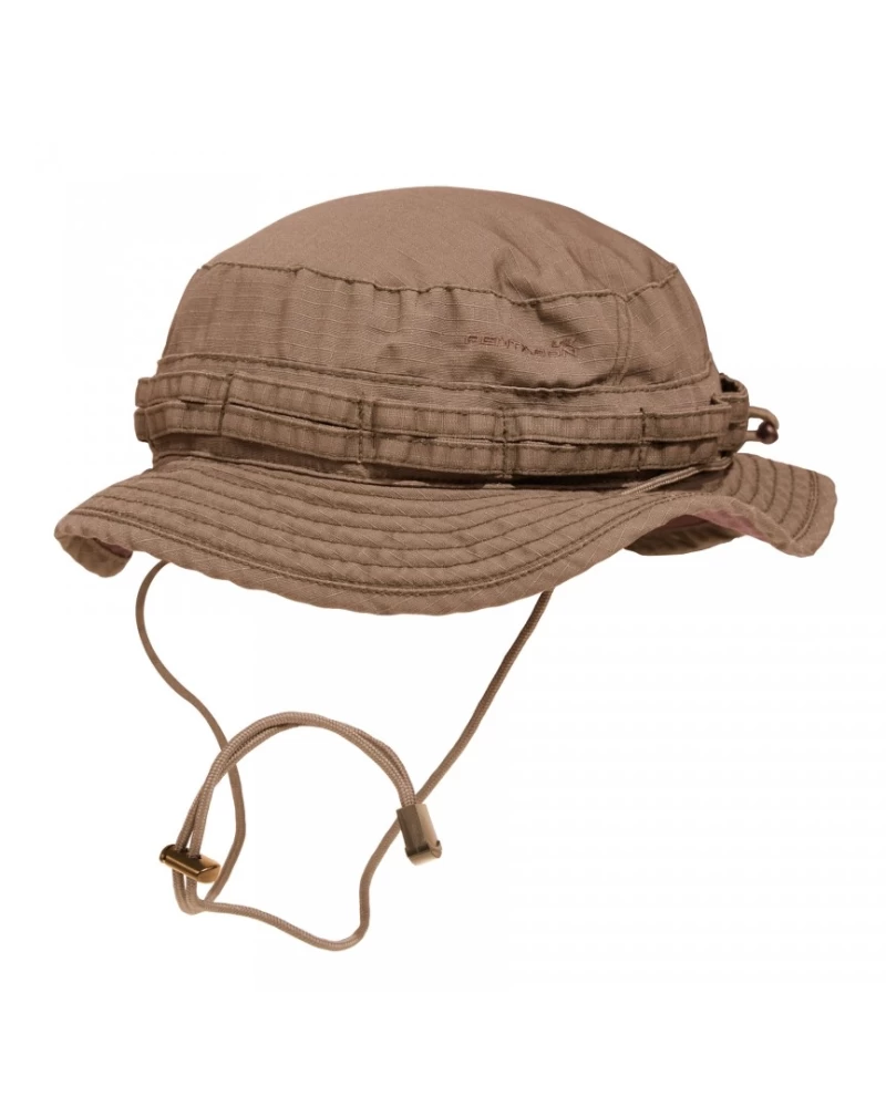 Лёгкая военная панама Babylon Boonie Hat создана фирмой Pentagon® по образцу панамы Bush Hat, используемой армией Великобритании в военных миссиях в жарком климате.Панама обеспечивает защиту головы от солнца и несильного дождя, одинаково удобна как в тактических целях, так и для всех видов активного отдыха на природе в летнее время. Тулья панамы с короткими полями оснащена вентиляционными клапанами с антимоскитной сеткой внутри и наружными стропами для крепления средств маскировки. По нижнему периметру тульи изнутри нашита полоса из быстросохнущего материала для впитывания пота. Подбородочный шнур из паракорда продет сквозь поля панамы и имеет регулировку двумя фиксаторами для оптимальной посадки на голове. Дышащая сетчатая подкладка способствует оптимальной вентиляции и комфорту ношения. Панама изготовлена из высококачественной предварительно стиранной ткани PolyCotton RipStop (65% полиэстер, 35% хлопок) плотностью 215 г/м2.Такая ткань обладает высокой устойчивостью к истиранию и разрывам, а также легче и быстрее сохнет, чем ткань из 100%