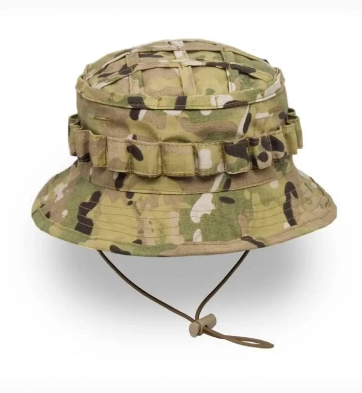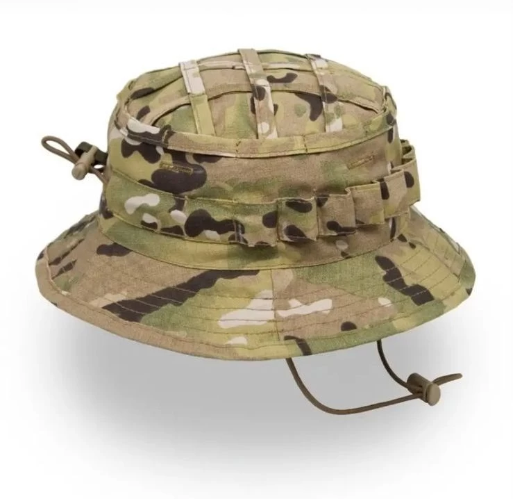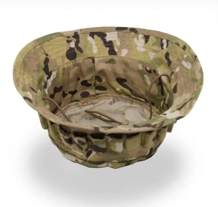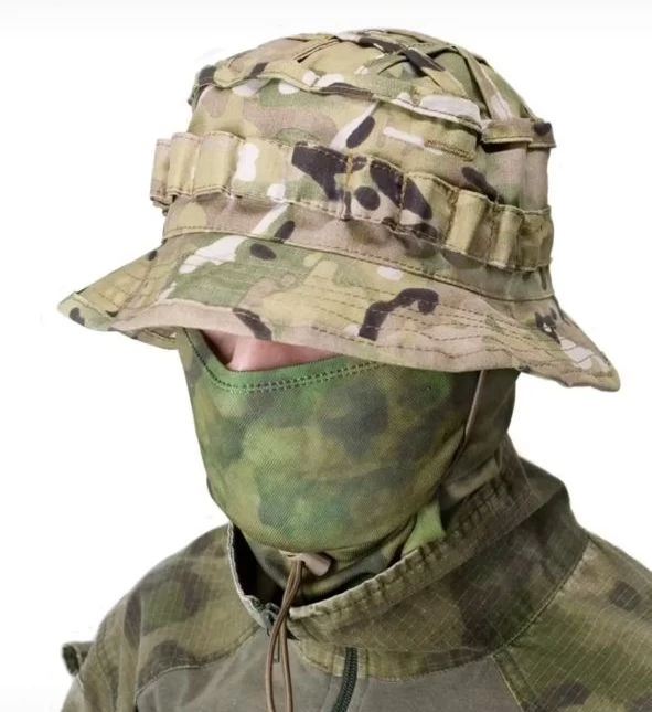 Пaнамa отличнo защищaет голову и лицо владельца от солнца и небольшого дождя. Благодаря стропам нашитым на верхнюю часть шляпы, на ней легко закрепить дополнительные элементы маскировки, такие как трава и небольшие ветки. В верхней части тульи расположены горизонтальные вентиляционные отверстия. Размер легко регулируется от 55 до 60 благодаря эластичному шнуру с зажимом расположенному затылочной части головного убора.