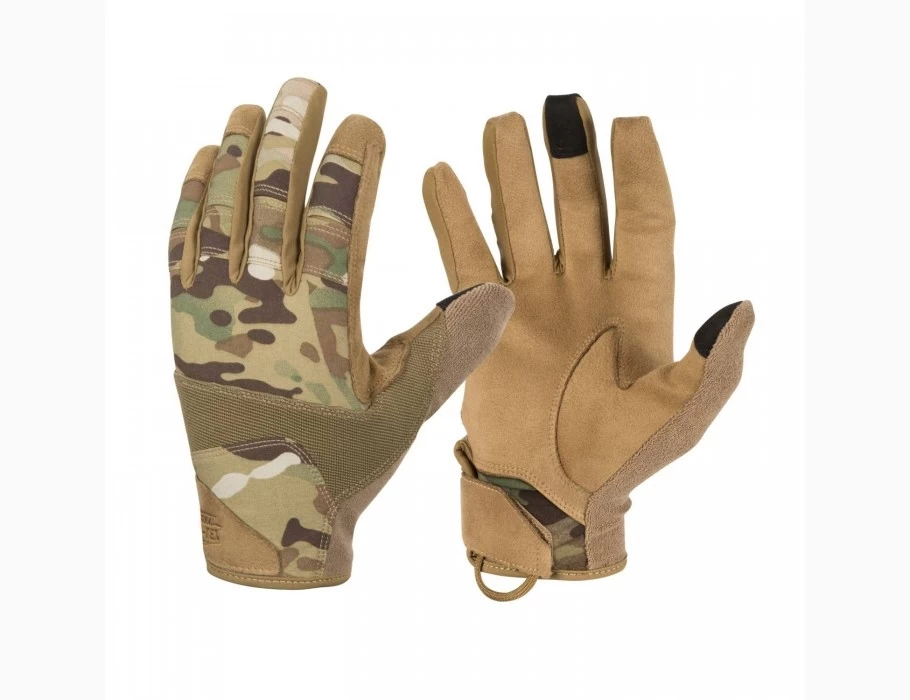 Разработаны в тесном сотрудничестве со специалистами по стрельбе. Особое внимание уделялось комфорту ношения и тактильным ощущениям спускового крючка. Перчатки прекрасно сидят на руке, дышат и отводят влагу от руки.•Сторона ладони пошита из синтетической кожи для долговечности, а внешняя сторона пошита из легкого дышащего материала.•На большом пальце существует мягкая накладка из микрофибры для стирания пота со лба или протирки очков. На костяшках пальцев предусмотрены разрезы для удобства при длительном ношении.•На большом и среднем пальце нашита ткань для возможности работать с сенсорными экранами, что позволит пользоваться устройствами без снятия перчаток. А также это позволяет сохранить перчатку при заряжании автомата.•Манжета имеет липучку для лучшего прилегания. Так же на манжетах нашиты паракордовые петли для возможности подвесить перчатки.