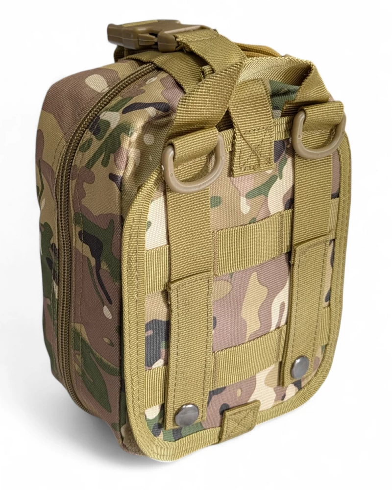 Подсумок для аптечки съемный molle (Multicam) предназначен для размещения индивидуальной аптечки на бронежилете, разгрузочном жилете или поясе, имеющих систему крепления MOLLE. Подсумок так же можно использовать как утилитарный. Оснащен удобным внутренним органайзером. Закрывается на молнию. Основной отсек открывается полностью и дает полный доступ к содержимому аптечки. За счет отстегивания подсумка от платформы, к нему можно получить быстрый и удобный доступ даже при условии размещения за спиной. Возможно размещение на обычном ремне.