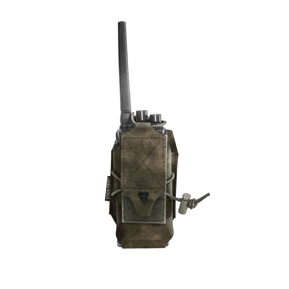 Универсальный подсумок под радиостанцию изготовленный по технологии МОЛЛЕ-минус. Благодаря регулировке размера, в данном подсумке можно разместить практически любую рацию, в том числе и с увеличенным аккумулятором. Особенности: - Благодаря системе МОЛЛЕ – минус данный подсумок обладает меньшим весом в сравнении с его аналогами, и большей прочностью, за счет более плотного материала. -Система крепления Fast Clip, имеющая меньшие габариты в сравнении с обычными стропами. - Рация надежно фиксируется при помощи эластичного жгута. - Клапан с эластичной стропой не закрывает выключатель и регулятор громкости. - Регулировка размера подсумка производится при помощи клапана на липучке велкро, а также увеличением длины нижней стропы.