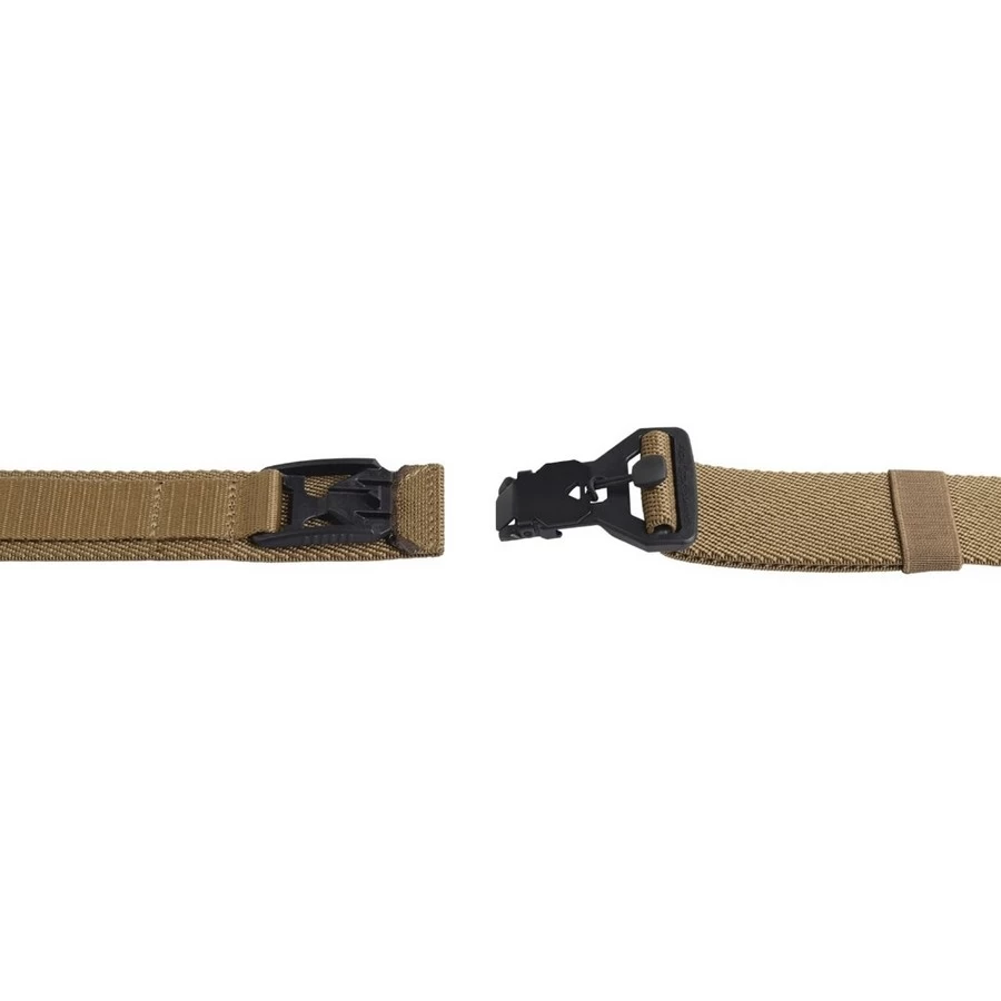 Пряжка фиксируется на стальную пластину с магнитную направляющей, что обеспечивает легкое закрывание и открывание. Срок службы неодимового магнита - более 30 лет. Материал пряжки - морозостойкий полимер. Нагрузка на разрыв - 70 кг. Игнорируется большинством металлодетекторов. Не надо снимать в аэропорту. За счет эластичности стропы и компактных размеров пряжки, ремень не доставляет дискомфорта, например, в автомобиле или при наклонах. Отлично работает на тактических штанах с растягиваемым поясом. Продевается в стандартные петли мужских и женских джинсов. Поперечная жёсткость стропы позволяет навешивать различные аксессуары так же, как на кожаный или тактический ремень. Имеется 5 размеров: S – до 90 см., M – до 100 см., L – до 110 см., XL – до 120 см; 5XL – до 160 см. Комфортная длина легко выставляется и надежно фиксируется пряжкой.