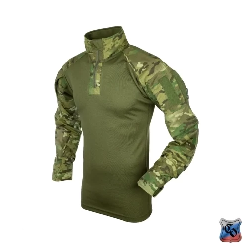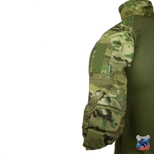 • Боевая рубашка предназначена для использования в тёплом и жарком климате в сочетании с бронежилетами разных типов.• Тело рубашки выполнено из лёгкого синтетического материала – Coolmax. Этот материал хорошо зарекомендовал себя в производстве спортивной одежды за свои высокие характеристики. Он очень хорошо отводит лишнее тепло и быстро сохнет. Материал мягкий и приятный в носке при интенсивных физических нагрузках и в жарком климате.• Плечи и рукава рубашки в зависимости от цвета выполнены либо из более плотной ткани Rip-Stop, либо из облегчённой ткани Панацея с усилением более толстой нитью через каждые 8 мм создающей внутреннюю сетку. Состав: 67% полиэфир, 33% вискоза. Ткань несколько тоньше, чем у большинства существующих боевых рубашек, что является плюсом для использования в жарком климате.• У рубашки ворот-стойка, для того чтобы защитить шею пользователя от натирания ружейным ремнём, горловиной бронежилета или поддерживающими пояс лямками.• Застёгивается ворот на качественную молнию от американской фирмы IDEAL. Верхняя часть молнии, которая обычно натирает подбородок закрывается планкой, которая сделана длиннее молнии и заворачивается во внутрь.• На рукавах есть 2 накладных кармана на молниях. Молния пришита заподлицо, чтобы за замок ничего не цеплялось. Со стороны выглядит так, будто молнии вообще нет.• Поверх карманов нашита мягкая часть липы для крепления нашивок и опознавательных знаков.• Низ рукавов достаточно широкий, что обеспечивает хорошую вентиляцию предплечья не заворачивая рукав наверх, сохраняя маскировку. По ширине регулируется хлястиком с липучкой.• Интегрированная защита локтей состоит из 3х сегментов из ткани Cordura или Кордон (в зависимости от выбранного цвета) со вспененным полимером внутри.• Вес рубашки размера 48-50/4 в расцветке A-Tacs FG ~ 362 г.