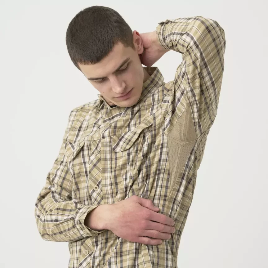 Обновленная версия рубашки серии Defender позволяет скрыто носить низкопрофильный бронежилет. Рубашка предназначена для сотрудников правоохранительных органов и службы безопасности, а также активных людей, нуждающихся в удобной функциональной одежде, имеющей привлекательный внешний вид. Ткань рубашки дышащая и быстро сохнет. Специальная стойка под воротником и вентиляционные отверстия подмышками позволят вам всегда оставаться опрятным. У рубашки четыре внешних нагрудных кармана. Два с клапанами на липучке. Ещё два грузовых кармана на молнии расположены под ними. Есть крепление для очков. Масса 337г. Материал: 48% полиэстер, 47% нейлон, 5% эластан (плотность 140г/м2)