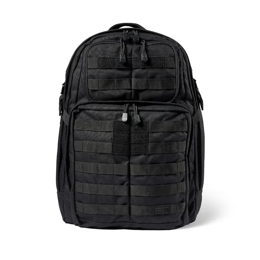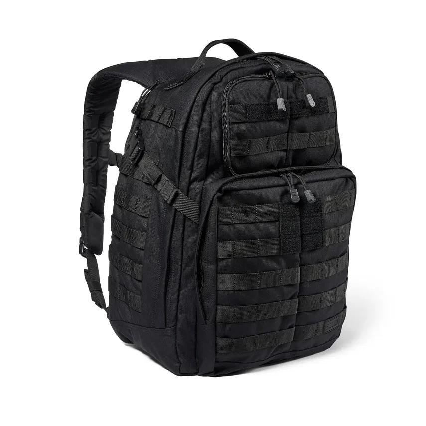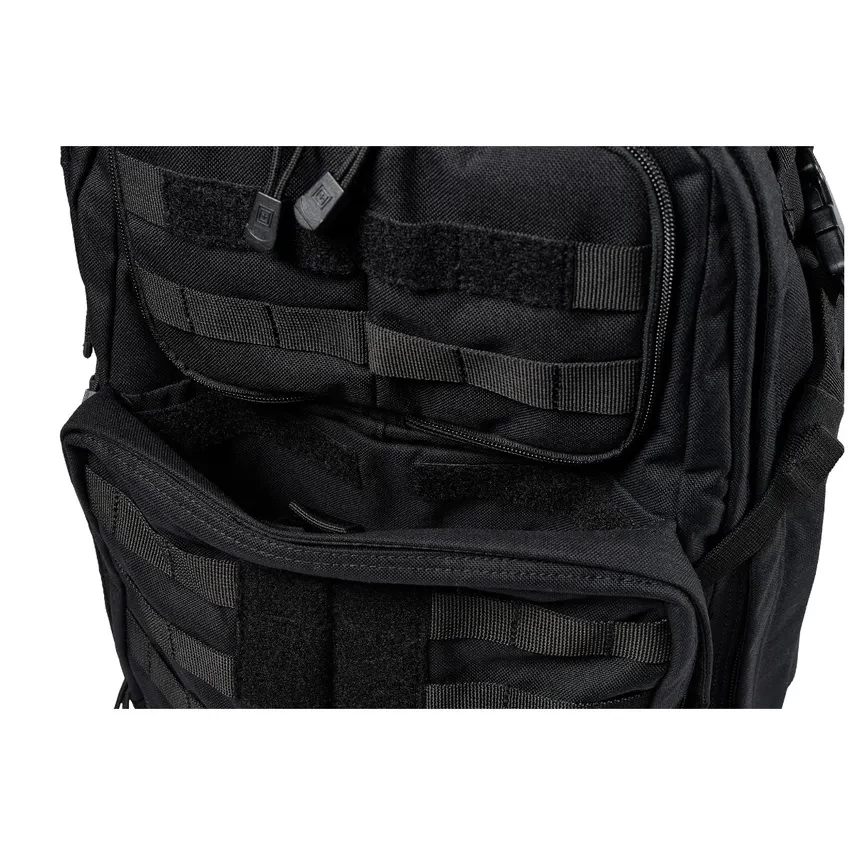 Новинка! Обновленная и улучшенная версия (2.0) тактического рюкзака Rush 24™ от 5.11 Tactical® в черной расцветке (Black). Объем рюкзака 37 литров, вес 1750 г. Рюкзак Rush 24™ 2.0 обладает огромным потенциалом для модернизации: нашитые стропы MOLLE позволяют легко увеличить полезный объем рюкзака путем подвешивания различных подсумков. Подсумки бывают самые разные: под органайзер, под магазин с патронами, под рацию, под бутылку с водой, под сухой паек и т. д. Кроме того, к Rush 24™ можно подсоединить небольшие однолямочные рюкзаки Rush Moab™ 6 и Rush Moab™ 10 при помощи универсальных ремней 5.11® Teir System (докупается отдельно). Отличия обновленной версии 2.0 от старой: В целом, общий вид обновленной версии рюкзака Rush 24™ практически не изменился. Однако модель стала более функциональной за счет следующий изменений: Спереди, за карманом органайзером, появился дополнительный карман на липучке. Для удобства открытия карман снабжен небольшой петлей. В основном отделении появился защищенный карман для ноутбука или документов с мягкими и плотными стенками. В старой версии вместо кармана для ноутбука имелись пара карманов (один на шнуровке, один сетчатый на молнии). В версии 2.0 люверсы на дне и в нижней части спинки отсутствуют. Предназначение рюкзака: Rush24™ больше подойдет для активного отдыха: походы, охота, рыбалка и т.д. В принципе, его также можно использовать как повседневный городской рюкзак, но только в том случае, если вы нуждаетесь в действительно вместительном рюкзаке, ибо объем Rush24™ целых 37 литров, что явно будет избыточным для городского рюкзака. В качестве повседневного рюкзака более популярна младшая модель - Rush12™, объем которого 24 литра. Внутри основного отделения: Открывается на 180 градусов, что обеспечивает очень удобный доступ к содержимому. Закрывается на защищенную от попадания воды молнию с двойными бегунками. Внутри имеются: На откидной стороне 3 широких кармана на молниях (2 из которых сетчатые). На противоположной стороне защищенный карман для ноутбука с мягкими стенками. Фиксируется на липучку с помощью широкой и эластичной стропы. Наружные карманы: Большой карман-органайзер. Располагается на фронтовой стороне. Удобно открывается почти на 180 градусов. На передней стенке два глубоких открытых кармашка. На противоположной стороне полноценный органайзер с множеством больших и малых кармашков под всевозможные мелочи (под ручки, мультитулы, зарядник, блокнот и т.д.), а также пара карабинов для крепления ключей. Карман закрывается на молнию с двойными бегунками; Карман на двух липучках прям за большим карманом-органайзером (на рюкзаках первого поколение его не было); Верхний карман (мульти-карман). Делится на два автономных кармана на молниях, в которых в свою очередь имеются по 3 кармашка. Итого 6 кармашков; Небольшой кармашек под очки с мягкой флисовой внутри. Расположен "на макушке" рюкзака, между основанием лямок и ручкой для переноски. Карман на спинке на молнии с двумя бегунками. Внутри можно закрепить гидратор. Для шланга гидратора имеется выход , расположенный по центру, над карманом, на уровне лямок. Спинка: Формованная, оптимальной жесткости. Жесткость обеспечивается при помощи съемной полимерной пластины. Имеются мягкие вставки и каналы для отвода тепла. Поясной ремень в данной модели отсутствует, однако вместо него по бокам имеются пряжки, чере