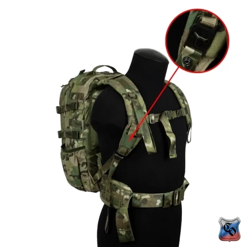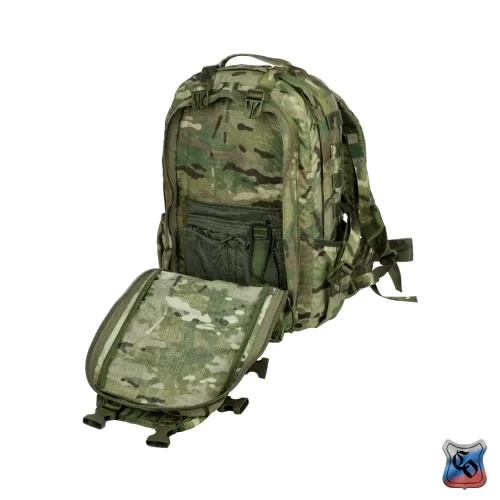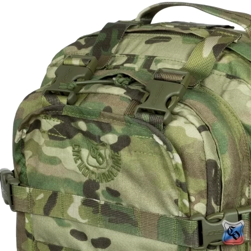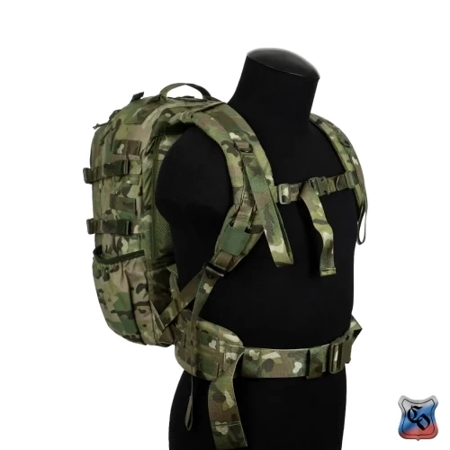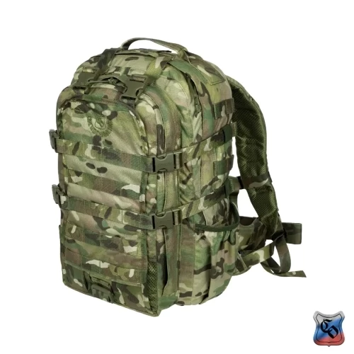 Рюкзак БОБР М• Рюкзак для штурмовых операций в условиях городской застройки.• Общий объём – 27 л.Основное отделение:• Высота отделения 45 см, длина 30 см (по передней стенке), ширина 15 см.• Объём – 20 л.• Застёгивается на витую молнию.• На внешней стенке расположен сетчатый карман для документов. Застёгивается на молнию. Высота кармана – 21 см, длина – 18 см.• На задней стенке расположен карман для спины-каркаса. Высота кармана 37 см длина 30 см. Карман позволяет устанавливать в него гидросистему объёмом до трёх литров. Одновременно невозможно размещение в кармане либо спины-каркаса, либо гидросистемы! СПИНА-КАРКАС БОБР-М В КОМПЛЕКТ НЕ ВХОДИТ!• Дно основного отделения усилено вторым слоем ткани.• На дне расположены отверстия с люверсами для отвода воды.Внешнее отделение:• Внешнее отделение представляет собой накладной карман, нашитый поверх основного отделения.• Высота отделения – 41 см, длина – 22 см, ширина – 6 см.• Внутри расположен органайзер с шестью карманами. Высота органайзера – 20 см, длина – 18 см. Органайзер состоит из: большого кармана высотой 17 см и длиной 18 см, поверх которого два кармана высотой 15 см, длиной 8 см и шириной 4 и 2 см соответственно, а также три внутренних кармашка высотой 15 см, длиной 3 см и шириной 1 см.Внешняя стенка накладного кармана с откидной площадкой – клапаном (хвостом):• Внешняя стенка накладного кармана с клапаном предназначена для вертикального крепления оружия, защитного шлема, или другого имущества, к которому необходим быстрый доступ.• Высота клапана – 40 см, длина – 19 см.• Для вертикального крепления оружия и длинномерных предметов диаметром до 7 см, под клапаном выполнено отверстие. Также на передней стенке кармана нашито два вертикальных ремня с четырьмя ячейками по 3 см на каждом, в которые вставляются съёмные петли.• На внешней стороне хвоста расположено 5 ремней по 4 Molle ячейки на каждой.Дополнительные карманы и крепления:• По бокам расположены два кармана без клапанов с эластичной утяжкой верха, для размещения фляги или бутылки с водой. Объём каждого кармана – 1 литр, высота – 19 см, длина – 13 см, ширина – 5 см.• Также по бокам нашиты по четыре ременные ленты по 2 ячейки Molle на каждой.• На дне основного отделения расположены две ременные ленты по 8 ячеек Molle на каждой.Подвесная система:• Плечевые лямки имеют S-образную форму.• Подкладка выполнена из сетки.• На лямках есть металлические замки-быстросбросы.• Есть съёмная грудная стяжка с фастексом.• Задняя стенка рюкзака с жёсткой прокладкой, мягкими подушками с подкладкой из сетки и съёмным поясом.• Толщина пояса – 1,5 см.• Съёмный пояс может использоваться отдельно в качестве пояса-основы для дополнительного Molle снаряжения.• На левой стороне пояса пришита петля для альпинистских карабинов.• Вес пустого рюкзака из материала плотностью 900D ~ 1 кг 720 г.