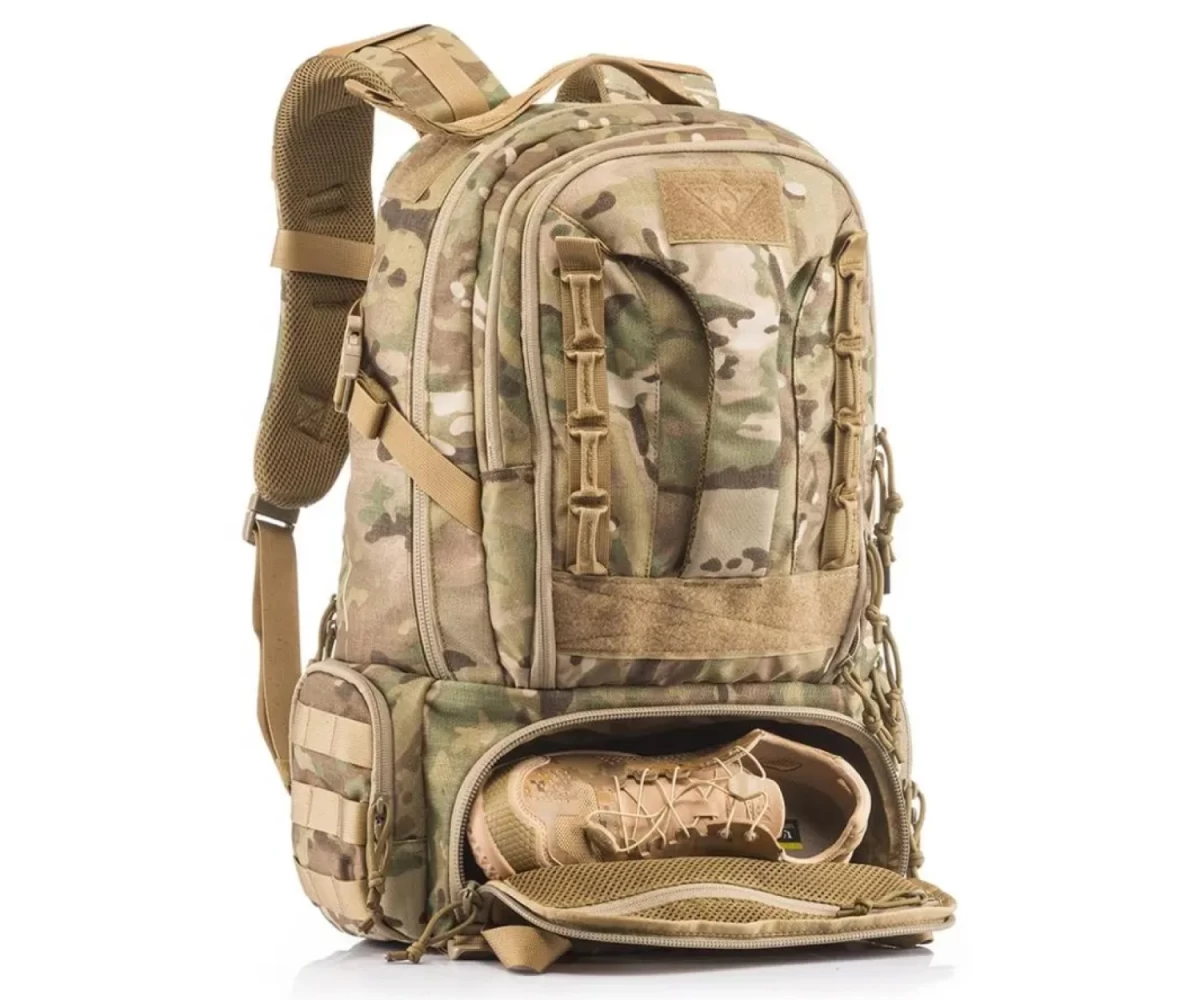 Тактические рюкзаки премиум класса YAKEDA от фабрики производителя тактического снаряжения для силовых структур и спецподразделений стран Тихоокеанского региона. Изделия данного производителя отличаются высочайшей степенью продуманности и качеством производства. Особенности рюкзака Yakeda KF-007: Водонепроницаем; Фурнитура YKK и Duraflex; Грудная и поясничная поддержка; Регулировка лямок; Cистема M.O.L.L.E. для крепления дополнительных модулей и принадлежностей; Дополнительное отделение для оборудования; Данная модель, конструктивно разделена на две автономные зоны клапаном на молнии, доступ к которому осуществляется из главного отделения. При открытии клапана, две зоны объединяются в один общий объём; Боковые отделения на молнии подойдут для переноски гаджетов или бутылок с водой; В месте крепления верхней ручки, расположено отверстие для шланга гидратора; На фронтальной части рюкзака есть дополнительная ручка для переноски. Так же, фронтальная часть может быть убрана во внутрь рюкзака и открывает доступ ко второй фронтальной стенке с системой M.O.L.L.E. для крепления дополнительного оборудования; Тактический рюкзак YAKEDA имеет грудную и поясную стяжки. Поясная стяжка включает в себя боковую поддержку. Тактические рюкзаки YAKEDA идеально подойдут для использования в туризме, охоте и различных видах спорта.