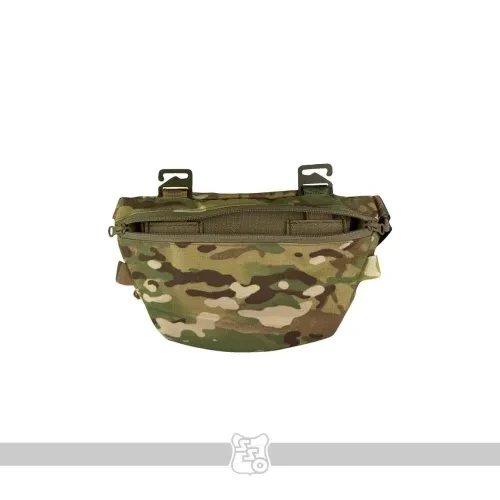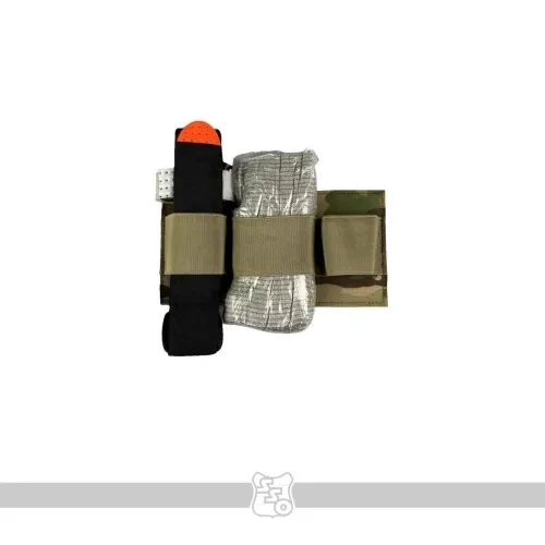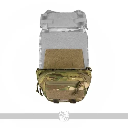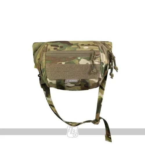 Сумка имеет два типа крепления - с помощью эластичного съемного регулируемого поясного обхвата и съемной велкро панели на G-hook под передний флэп или плакард.Сумка имеет три отделения - основное с двумя съемными инсертами.Один из них представляет панель с тремя пришитыми участками эластичной резинки с аппретом, позволяющей использовать сумку под медицину или другие спец.средства.Второй инсерт представляет собой съемную панель с карманом из флекса, позволяющим регулировать объем укладываемого имущества.Внутри отделения присутствуют две петли для размещения средств с помощью карабинов и два люверса, позволяющих с помощью эластичного шоккорода крепить к низу сумки турникет.Вход в карман реализован с помощью двухзамковой американской молнии IDEAL, имеющей такую анатомию, что позволяет обозревать и удобно вынимать содержимое сумки при ношении с бронежилетом.На фронтальной части сумки расположен дополнительный карман для размещения полезных мелочей.Также на передней стенке размещено несколько петель в виде ременной ленты для крепления доп.имущества с помощью карабинов.С внутренней стороны сумки располагается дополнительный карман на молнии для установки баллистических пакетов, либо дополнительного снаряжения.В данный карман также убирается крепление сумки к бронежилету, если поставленная задача требует использовать сумку в качестве поясной. • Сумка поставляется без содержимого. Ширина в верхней части - 27смВысота -17смГлубина - 7 см.Вес пустой сумки 340 грамм.