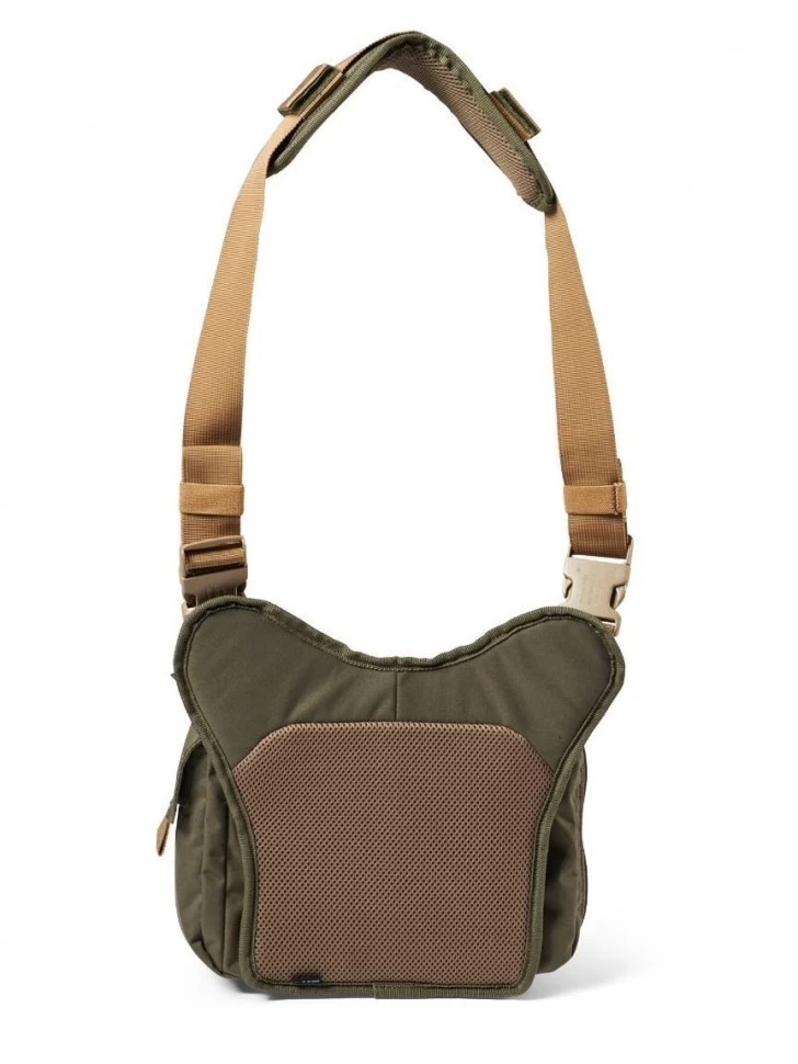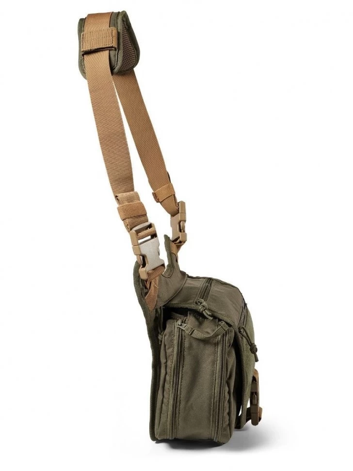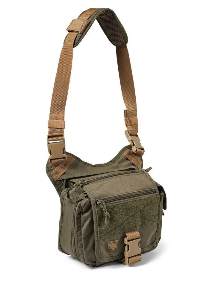 Тактическая сумка через плечо Daily Deploy Push Pack от бренда 5.11 Tactical® в расцветке Ranger Green (аналог Оливы). Объем сумки 5 литров, вес 550 г. Сумка Daily Deploy Push Pack - универсальный аксессуар на каждый день. Сумка имеет оптимальный размер и большое количество всевозможных карманов, которые позволят организованно разместить все повседневные мелочи. Внутри основного отделения: На задней стенке имеется карман-органайзер для мелочей. Также имеется карабин для ключей. Отделение максимально просторное и вместительное, так как никаких перегородок не имеется. Основное отделение закрывается клапаном на массивном фастексе. Интересная деталь - дополнительный доступ в основное отделение при закрытом клапане, благодаря молнии, которая расположена в верхней части сумки. Внешние карманы: Карман на клапане; Карман на липучках под клапанам на передней стороне сумки; По одному карману по бокам; Большой карман за спинкой (доступ сверху). Плечевой ремень: Снабжены системой быстрого сброса на фастексах; Большой запас регулировки по длине; Удобная и съемная накладка. Спинка: Полностью облицована мягкой вентилируемой вставкой. Материал и фурнитура: Основной материал - влагостойкий баллистический нейлон 500D; Молнии - проверенные временем и легендарные YKK® (Япония). Мягкий ход, двойные бегунки с длинными завязками для удобного хвата; Фурнитура - прочнейший материал от Duraflex® (США). Легкий композитный пластик, устойчив к морозам и ударам, с приличным запасом гибкости.