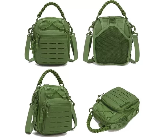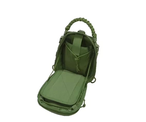 Сумка тактическая однолямочная (паракорд)(олива) Не смотря на то, что конструкция сумки предполагает, что её будут носить на плече, её можно носить и как рюкзак, на поясе, в руках или закреплённой на другом элементе экипировке.Сумку носят на разгрузочный ремень, который крепится на застежку фастекс, что позволяет быстро снять и надеть сумку, а в верхней части сумки есть удобная ручка переноса, выполненная из плетеного паракорда. Сумка имеет два основных отделения: большое и малое. В большом отделении есть два кармана с сетчатой стенкой и один карман разделитель, закрывающийся на липучке. Большое отделение так же оснащено разделительной перегородкой органайзером с дополнительными карманами и велкро панелью для дополнительных подсумков. Сумка отлично подойдет как для активного отдыха, так и для повседневного ношения. Объем: 5-8 литров Размеры: 20х26х14 см Фурнитура:молния