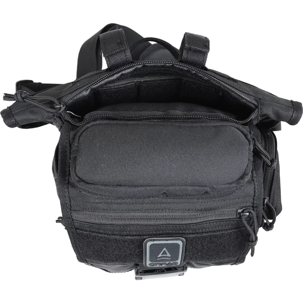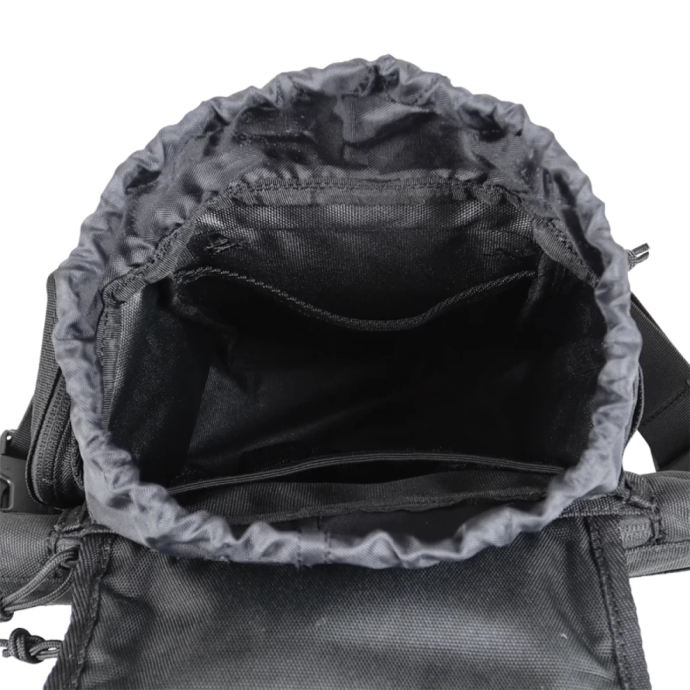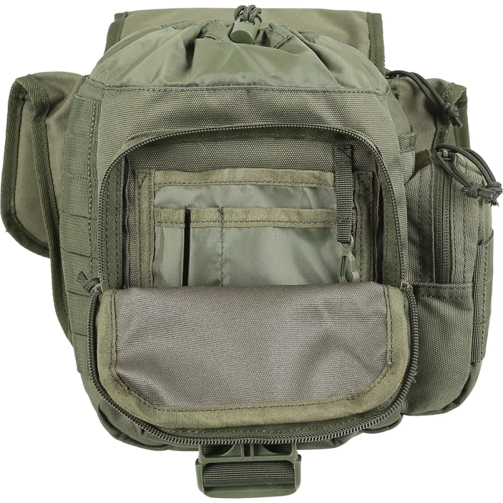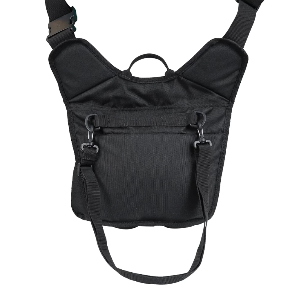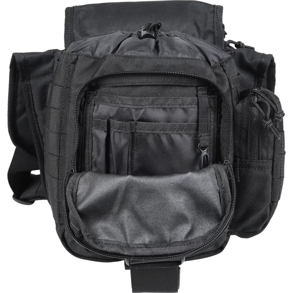 Тактическая городская сумка компоновки типа «Versipack» с возможностью крепления кобуры для скрытого ношения оружия Симметричная ориентация основного отделения относительно лямок Вход в основное отделение оснащен тубусом (утяжка шнуром с фиксатором) и закрывается сверху клапаном на регулируемом 50 мм фастексе. Вшитая застежка на липучке для фиксации свободного конца стропы в свернутом состоянии На клапане спереди липучка-петля большой площади для размещения шевронов и именных лент. Съемный логотип на липучке в комплекте. Спереди клапана плоский карман на горизонтальной молнии Сверху клапана объемный карман на молнии для очков, с усилением стенок толстой полужесткой пеной и подкладкой из мягкого велюра Спереди основного отделения объемный карман на молнии с внутренней организацией (кармашки и крючок-карабин для подвеса мелочей) и внешний плоский карман с открытым верхом. Эти карманы накрываются клапаном основного отделения Левая боковая поверхность основного отделения со стропами PALS во всю высоту для навески подсумков Правая боковая поверхность основного отделения с объемным карманом на молнии, передняя стенка кармана с усилением полужесткой пеной и нашитыми стропами PALS Внутри основного отделения два кармана, передний плоский и задний объемный из сетки с подрезиненным верхом В основании сумки большой плоский отсек с доступом сверху на горизонтальной молнии. На задней стенке внутри отсека нашита липучка-петля большой площади для крепления внутренней организации или кобуры для скрытого ношения оружия Над отсеком для кобуры расположено крепление зонта в виде горизонтальной стропы с ячейками, в которые продеты две съемных регулируемых шлевки из стропы на липучках. Эти шлевки удерживают зонт в горизонтальном положении Сверху ручка из стропы для переноски Плечевой ремень из регулируемой 50 мм стропы, на фастексе. В комплекте широкая мягкая съемная плечевая подушка с тремя шлевками на липучках, под которые пропускается плечевой ремень, с нескользящей подкладкой Сверху сумки в двух местах крепления плечевого ремня вшита полужесткая пена для поддержания формы, снаружи располагаются стропы PALS для крепления небольших подсумков и скрытые карманы с открытым верхом для переноски ножей и мультитулов с клипсой (функционал показан на фото) В комплекте съемный регулируемый 25 мм ремень на двух крючках-карабинах, крепящийся к полукольцам на задней стороне сумки. Он предназначен для фиксации относительно талии, что позволяет избежать колебаний сумки при активном движении На всех молниях замки с удобными ухватками из шнура Характеристики Вес: 640 г Размеры основного отделения до основания тубуса (ШxТxВ): 20×10×21 см Размеры бокового кармана (ШxТxВ): 10x4x15 см Размеры фронтального кармана (ШxТxВ): 15x5x17 см Основная ткань: Polyester 900D PU Пластиковая фурнитура: Duraflex®