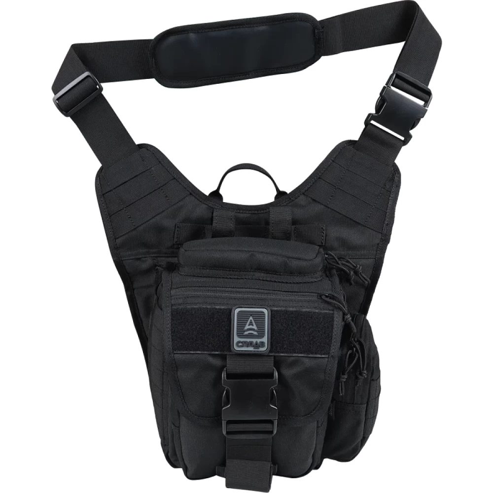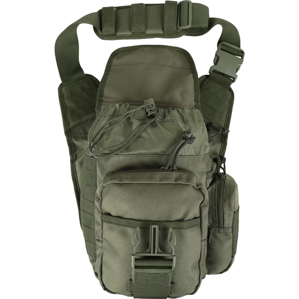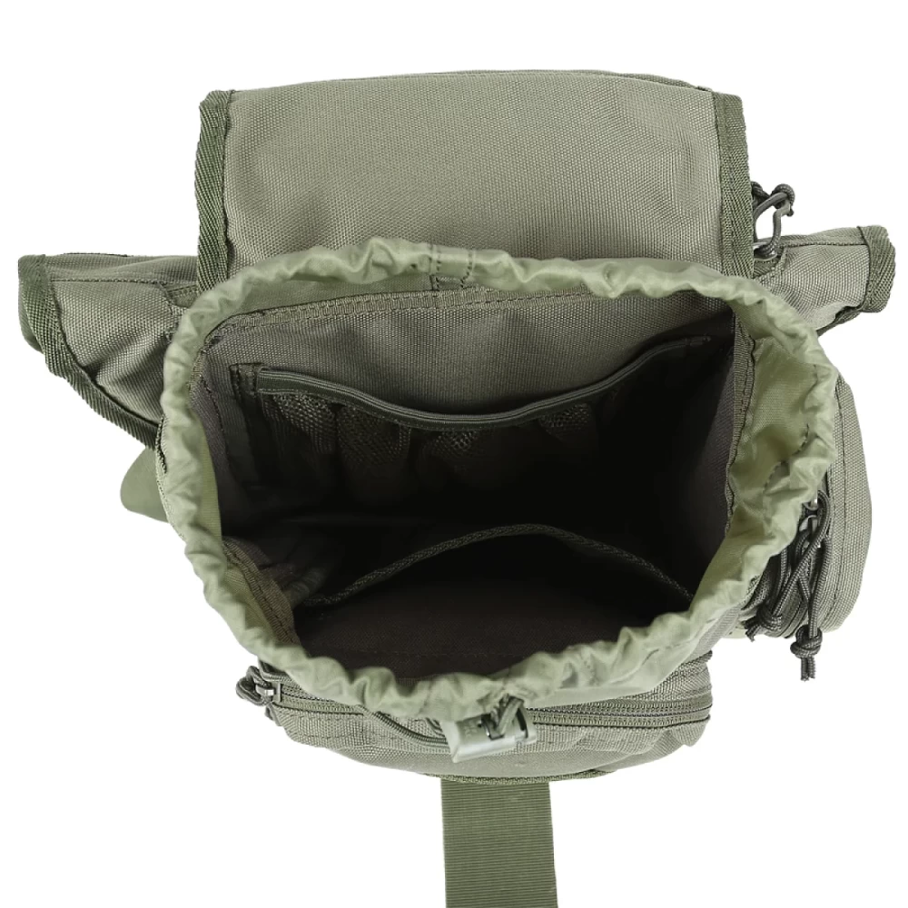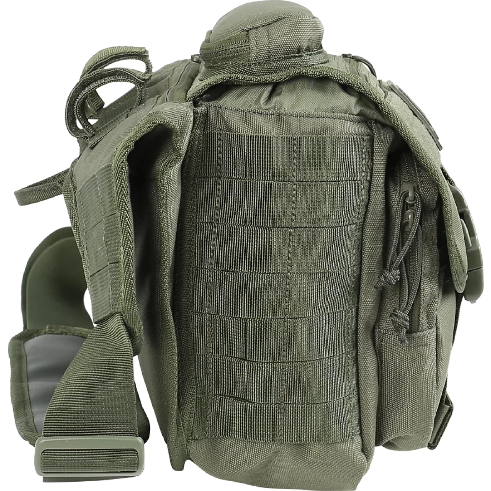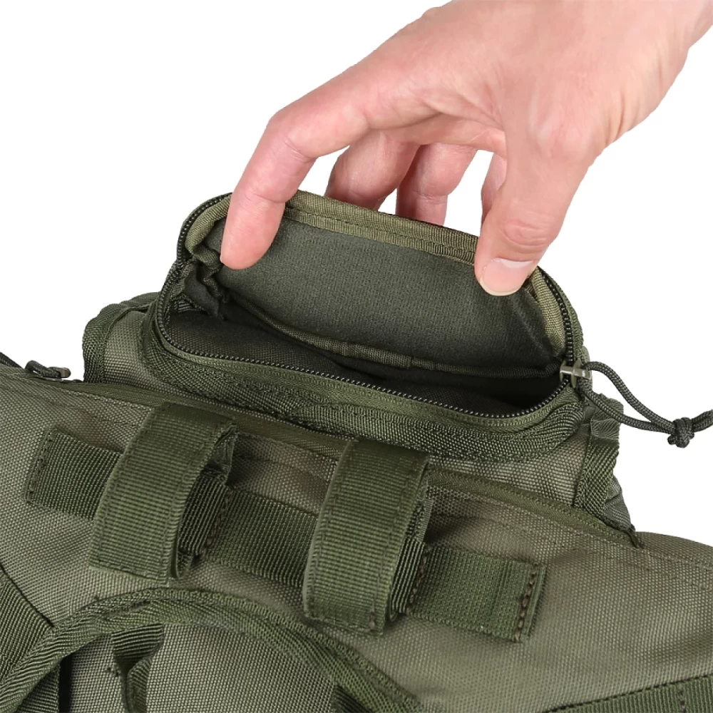 Тактическая городская сумка компоновки типа «Versipack» с возможностью крепления кобуры для скрытого ношения оружия Симметричная ориентация основного отделения относительно лямок Вход в основное отделение оснащен тубусом (утяжка шнуром с фиксатором) и закрывается сверху клапаном на регулируемом 50 мм фастексе. Вшитая застежка на липучке для фиксации свободного конца стропы в свернутом состоянии На клапане спереди липучка-петля большой площади для размещения шевронов и именных лент. Съемный логотип на липучке в комплекте. Спереди клапана плоский карман на горизонтальной молнии Сверху клапана объемный карман на молнии для очков, с усилением стенок толстой полужесткой пеной и подкладкой из мягкого велюра Спереди основного отделения объемный карман на молнии с внутренней организацией (кармашки и крючок-карабин для подвеса мелочей) и внешний плоский карман с открытым верхом. Эти карманы накрываются клапаном основного отделения Левая боковая поверхность основного отделения со стропами PALS во всю высоту для навески подсумков Правая боковая поверхность основного отделения с объемным карманом на молнии, передняя стенка кармана с усилением полужесткой пеной и нашитыми стропами PALS Внутри основного отделения два кармана, передний плоский и задний объемный из сетки с подрезиненным верхом В основании сумки большой плоский отсек с доступом сверху на горизонтальной молнии. На задней стенке внутри отсека нашита липучка-петля большой площади для крепления внутренней организации или кобуры для скрытого ношения оружия Над отсеком для кобуры расположено крепление зонта в виде горизонтальной стропы с ячейками, в которые продеты две съемных регулируемых шлевки из стропы на липучках. Эти шлевки удерживают зонт в горизонтальном положении Сверху ручка из стропы для переноски Плечевой ремень из регулируемой 50 мм стропы, на фастексе. В комплекте широкая мягкая съемная плечевая подушка с тремя шлевками на липучках, под которые пропускается плечевой ремень, с нескользящей подкладкой Сверху сумки в двух местах крепления плечевого ремня вшита полужесткая пена для поддержания формы, снаружи располагаются стропы PALS для крепления небольших подсумков и скрытые карманы с открытым верхом для переноски ножей и мультитулов с клипсой (функционал показан на фото) В комплекте съемный регулируемый 25 мм ремень на двух крючках-карабинах, крепящийся к полукольцам на задней стороне сумки. Он предназначен для фиксации относительно талии, что позволяет избежать колебаний сумки при активном движении На всех молниях замки с удобными ухватками из шнура Характеристики Вес: 640 г Размеры основного отделения до основания тубуса (ШxТxВ): 20×10×21 см Размеры бокового кармана (ШxТxВ): 10x4x15 см Размеры фронтального кармана (ШxТxВ): 15x5x17 см Основная ткань: Polyester 900D PU Пластиковая фурнитура: Duraflex®