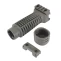 Передняя рукоятка - устанавливается для повышения управляемости ствола. Проста в установке и устойчива к повреждениям и износу. Производится в трех размерах: большом, среднем и маленьком. Отличия: Передняя рукоятка удобна при эксплуатации тяжелого и крупногабаритного оружия, поскольку позволяет принять часть веса на вторую руку в комфортном положении; Имеет внутренний отсек, куда можно складывать полезные мелочи вроде батареек, ершиков, зажигалки и пр. Чтобы открыть его, поверните нижнюю часть рукояти против часовой стрелки и потяните на себя. Чтобы закрыть отсек, выполните действия в обратном порядке; Оборудована съемной планкой Пикатинни, куда можно закрепить ЛЦУ или фонарик. Рельса фиксируется на два шестигранника, за ненадобностью может быть заменена на простую заглушку; Передняя рукоятка снабжена специальными насечками и протекционным рисунком, которые гарантируют надежный хват и не дают ладони стрелка скользить по корпусу; Занимает 4 шага на рельсах Picatinny или Weaver; Передняя рукоятка выполнена из прочного полимера, армированного стекловолокном, что гарантирует ее прочность и устойчивость к падениям; Выпускается в трех цветах - песочном («пустыня»), оливковом или черном.